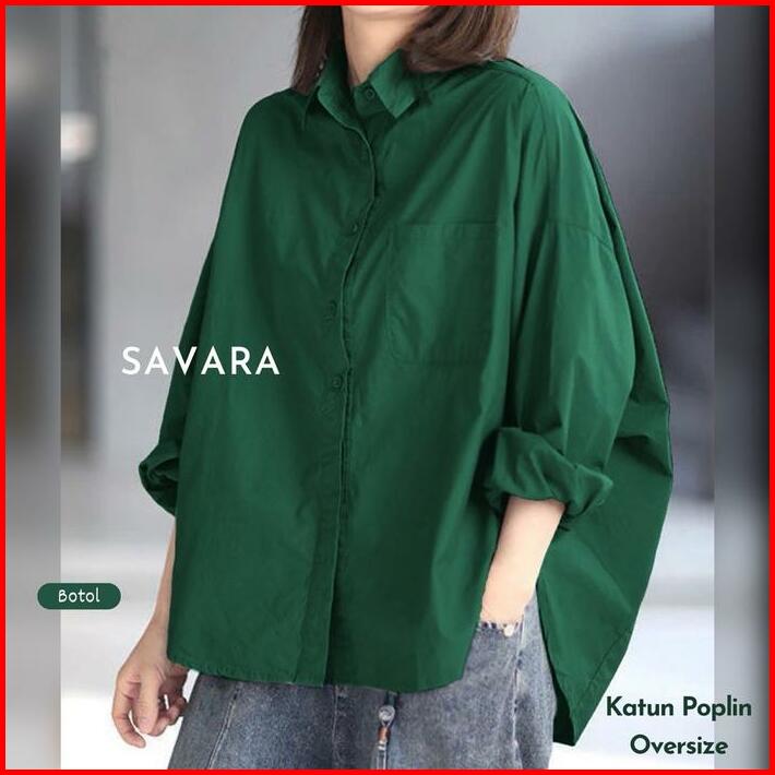 Zarra Oversize Atasan Kemeja Blouse Polos Wanita Nyaman Bahan Katun Poplin Savara