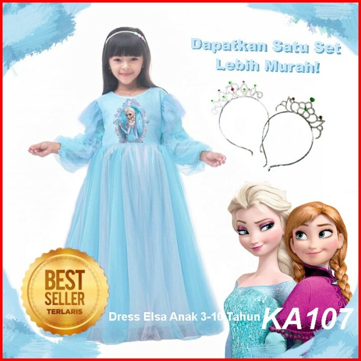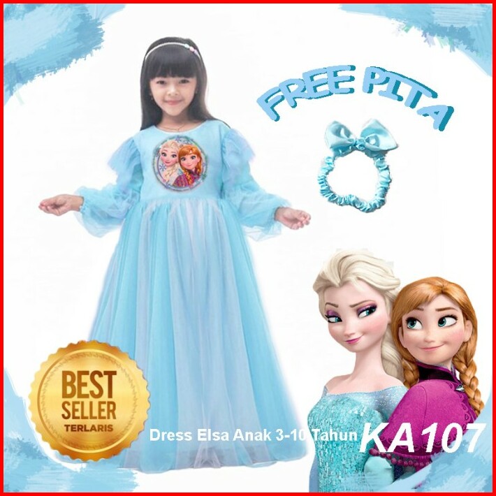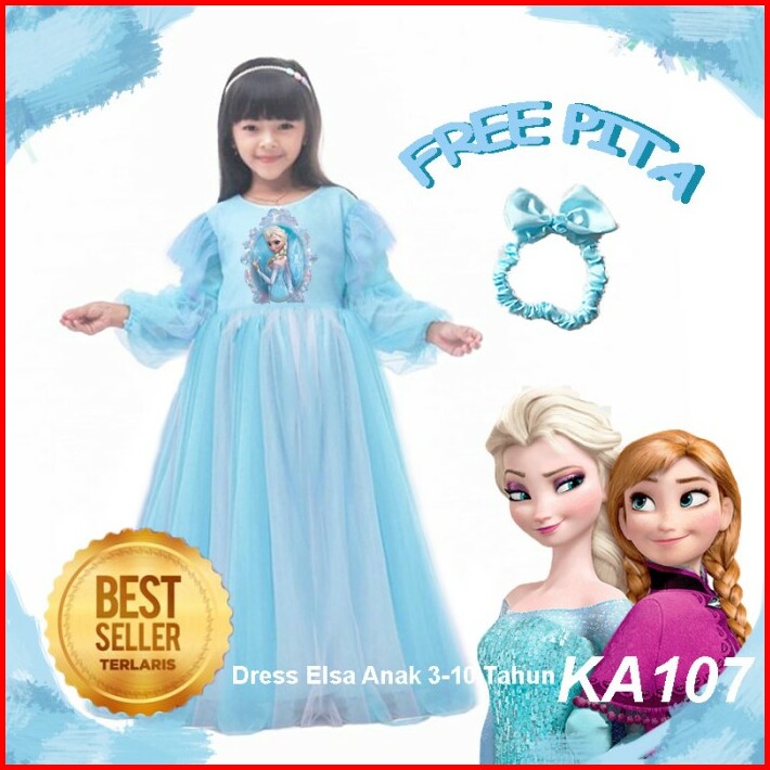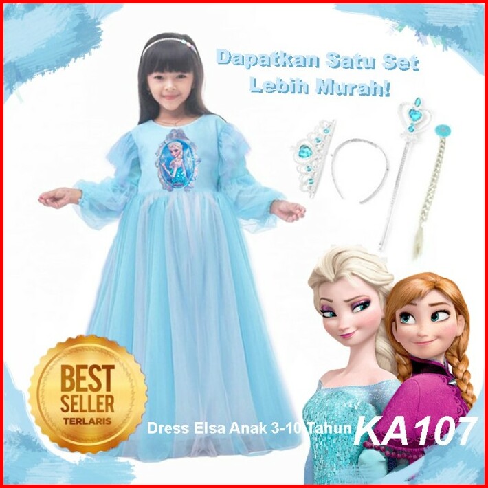 Gaun Dress Baju Elsa Frozen Anak 3thn 10thn Kostume Elsa Anna Newka107