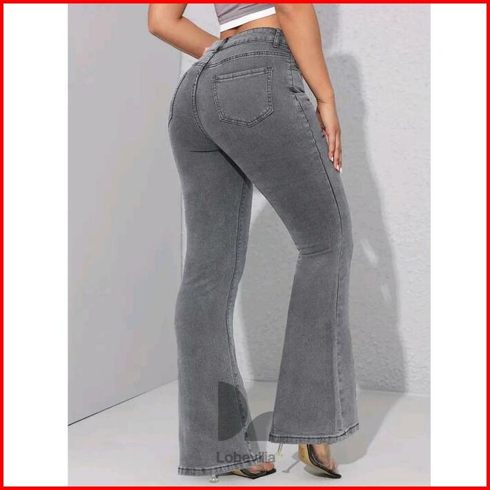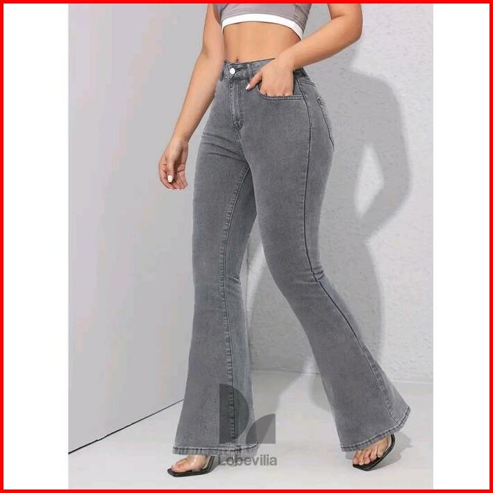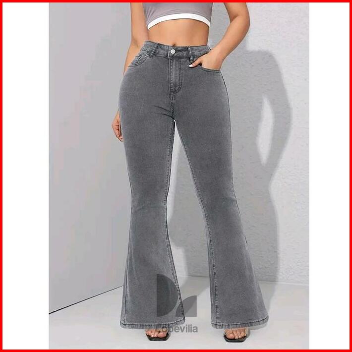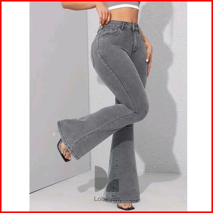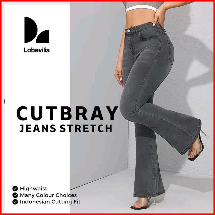 Cutbray Jeans Stretch Wanita Highwaist Abu Abu Panjang