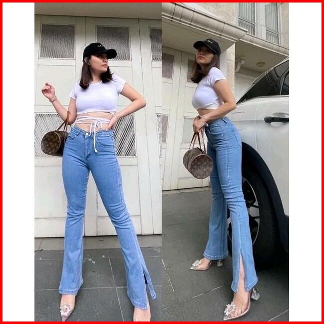Hw Cutbray Belah Samping Jeans Wanita Size 27-34 Celana Cutbray Jeans Cewek Denim Wanita Polos Panjang Dewasa Highwaist