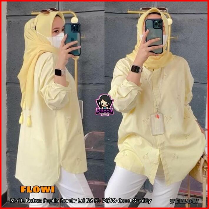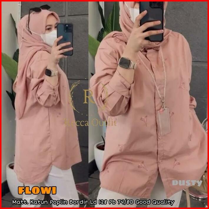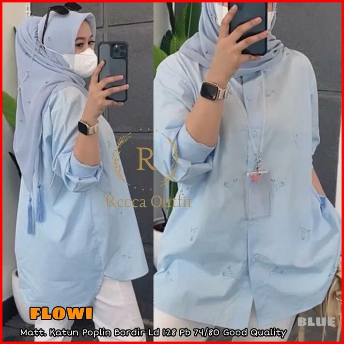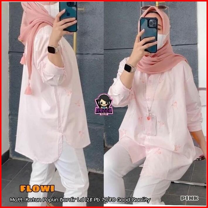 Flowi Kemeja Wanita Kekinian Bahan Katun Poplin Adem Tebal Nyaman Tidak Nerawang Atasan Wanita Kerja Jumbo Oversize Casu