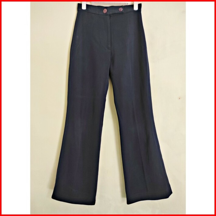 Prelove Thrift Celana Highwaist Cutbray Navy Korea Vintage Retro Kerja