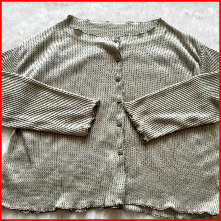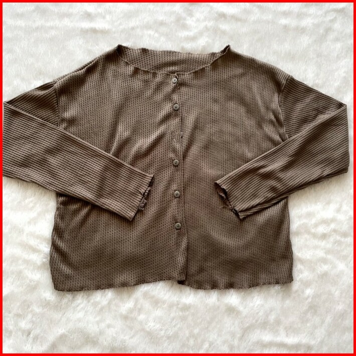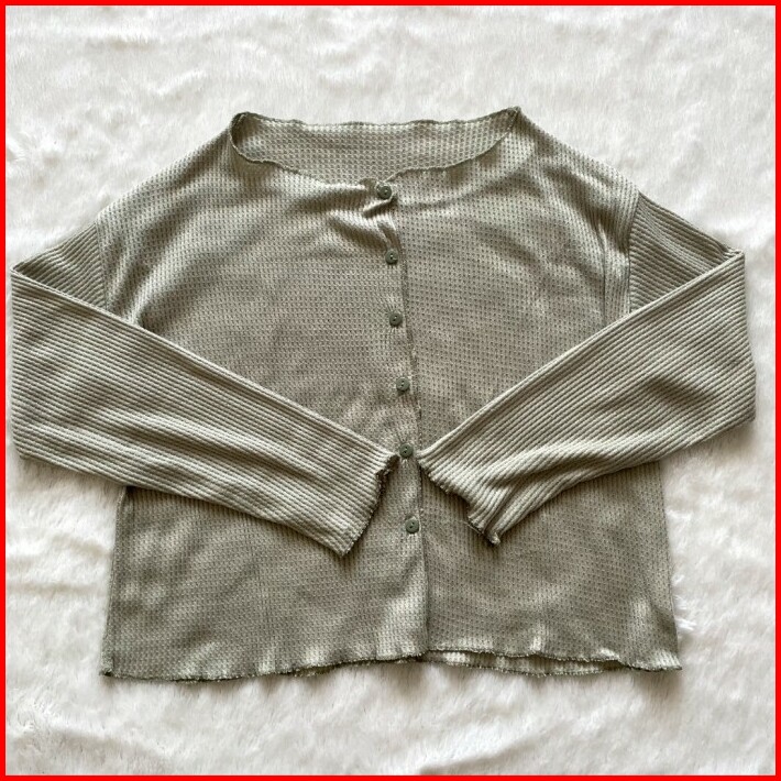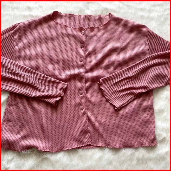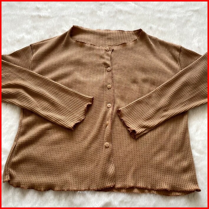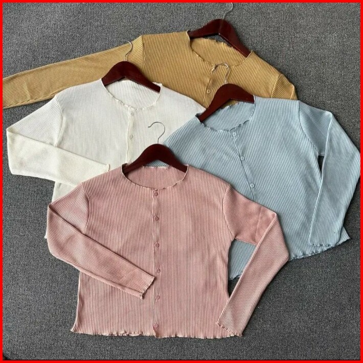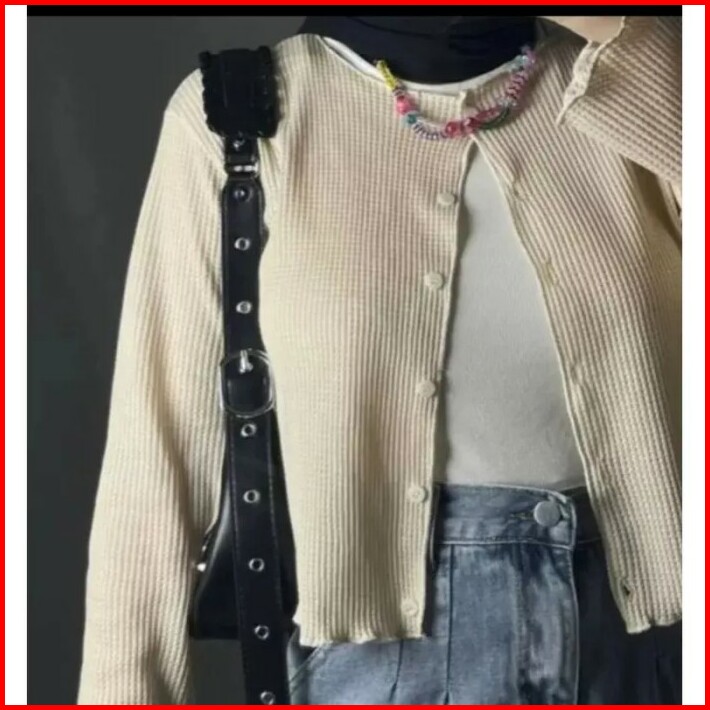 Cardigan Crop Top Rajut Wanita Bahan Waffle
