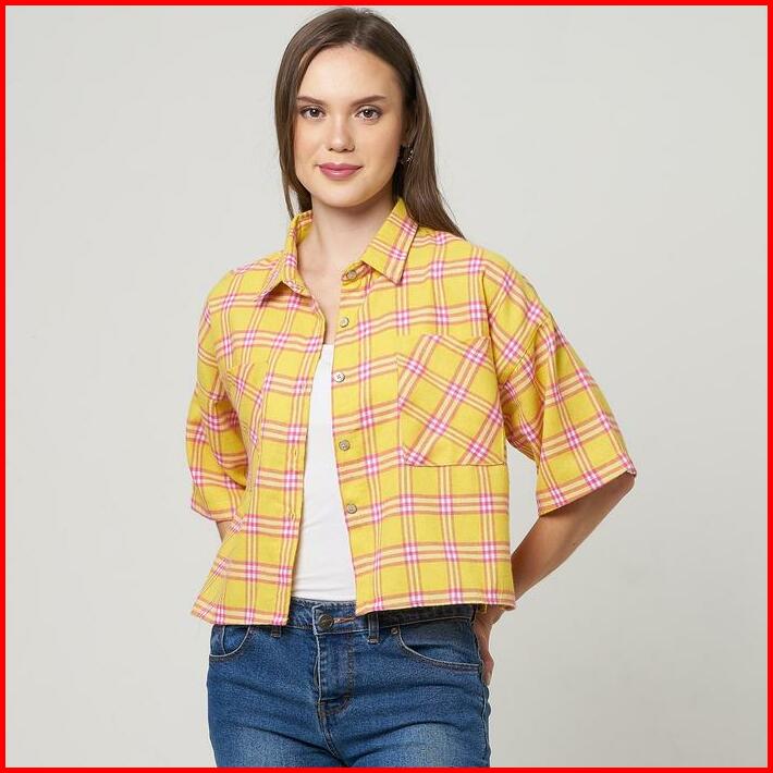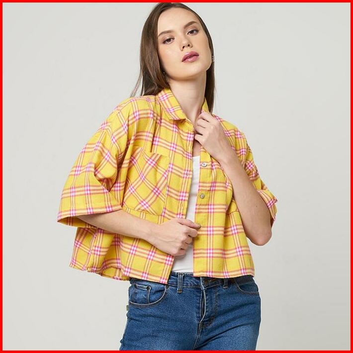 Monellina 601401 Kemeja Flanel Crop Oversize Wanita Lengan 3 4