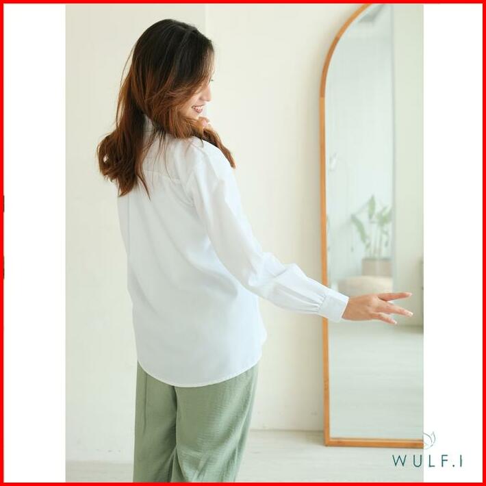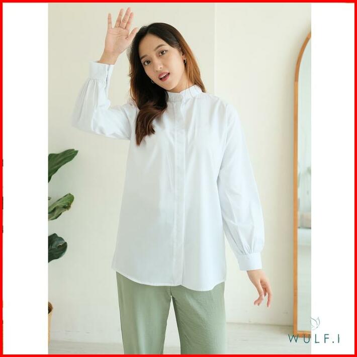 Wulfi Atasan Kemeja Kingpin White Kemeja Lengan Panjang Putih Kemeja Kantor Blouse Wanita Kemeja Jumbo Kancing Kerah Tan