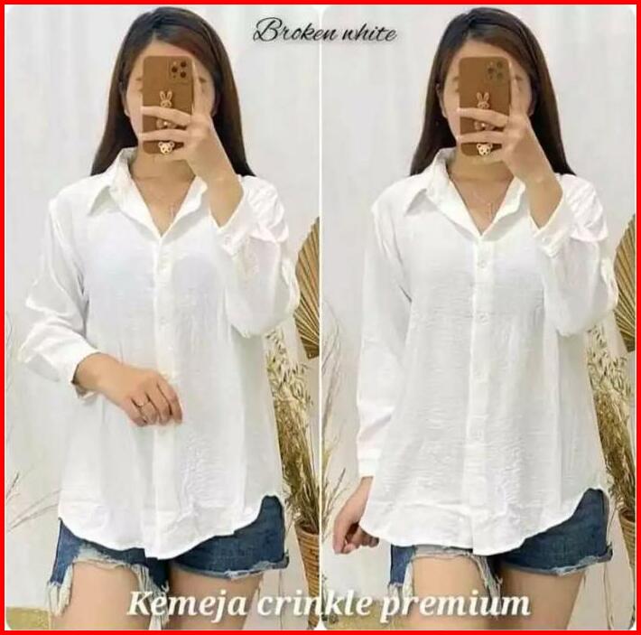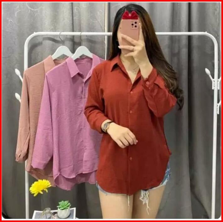 Kemeja Wanita Crinkle Atasan Blouse Lengan Panjang Motif Polos Kringkel Casual Oversize Baju Cewek Dewasa Kancing