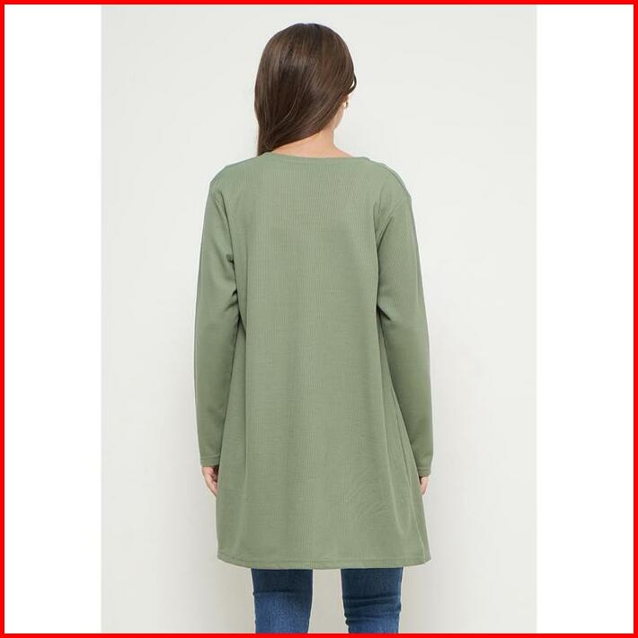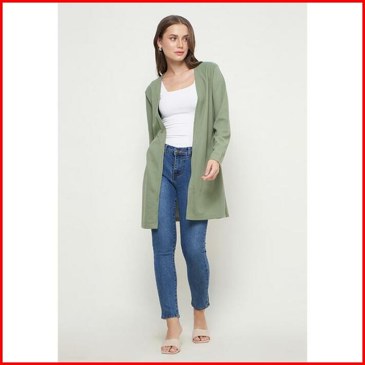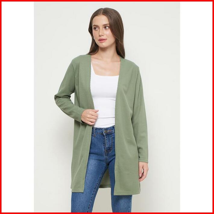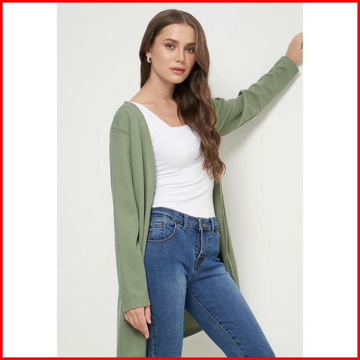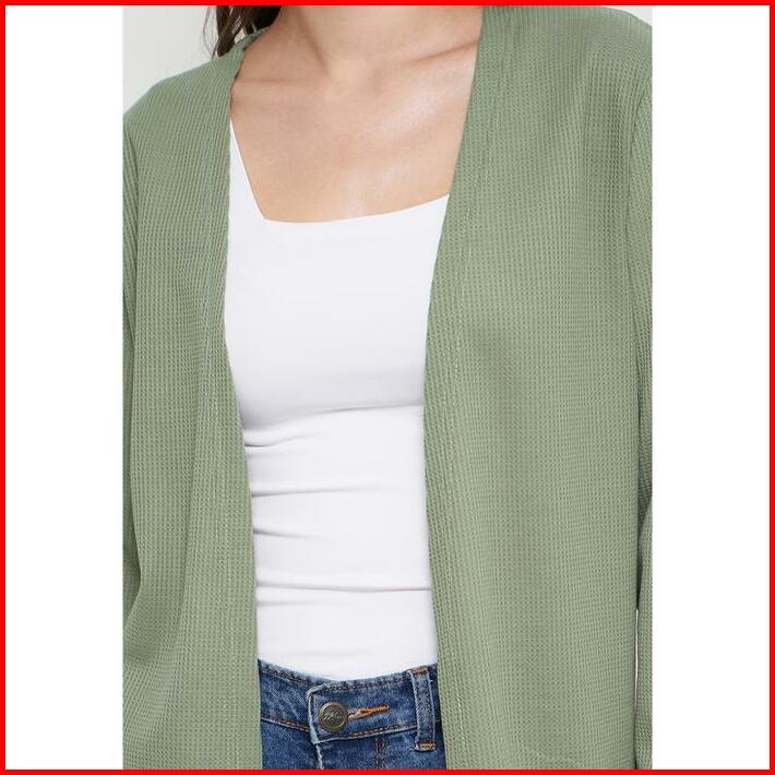 Cardigan Knit Waffle Outer Rajut Wanita Lengan Panjang Hijau Sage Sr002