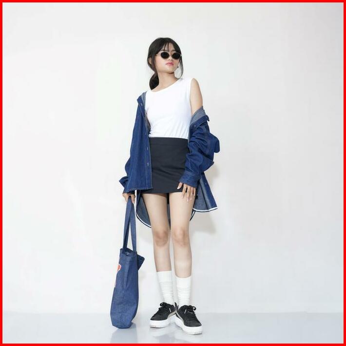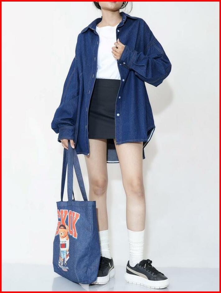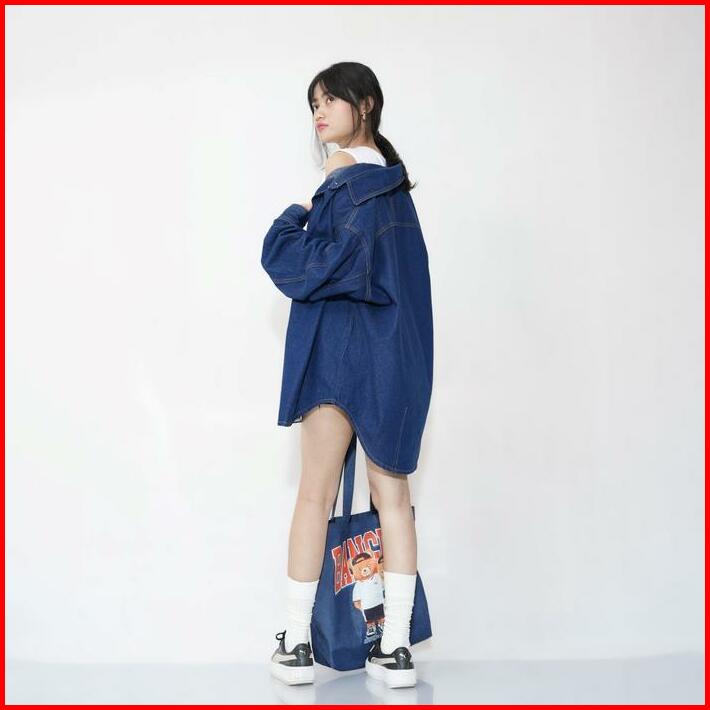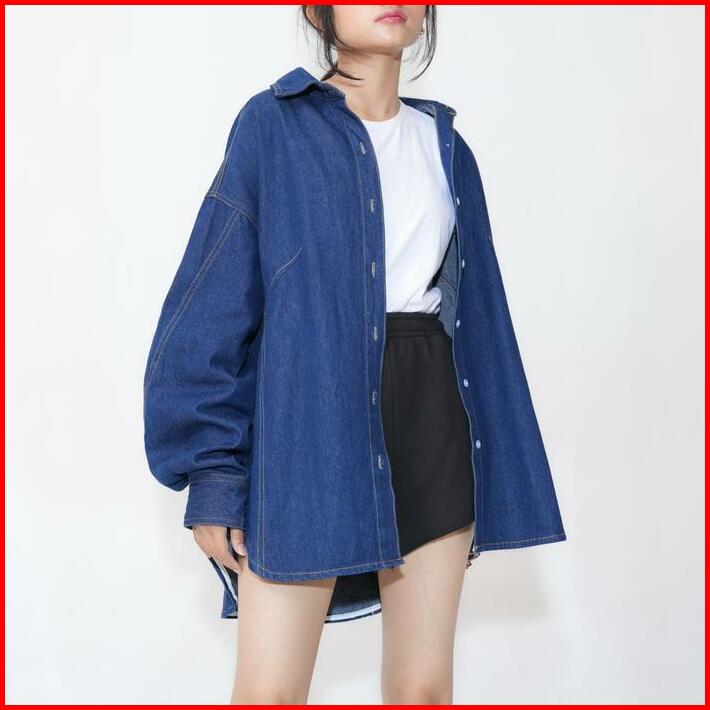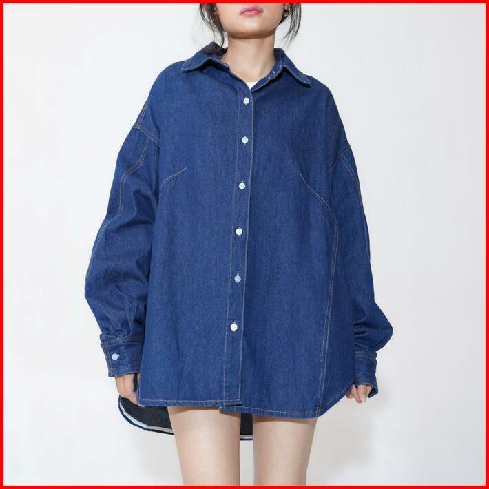 Kemeja Oversize Wanita Denim Tebal