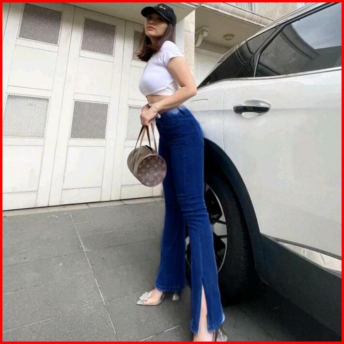 Hw Cutbray Belah Samping Jeans Wanita Size 27-34 Celana Jeans Cutbray Wanita Polos Panjang Dewasa Highwaist Stretch Cewe