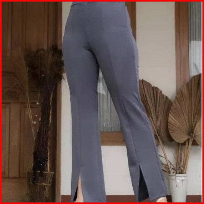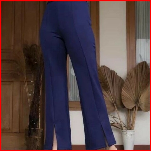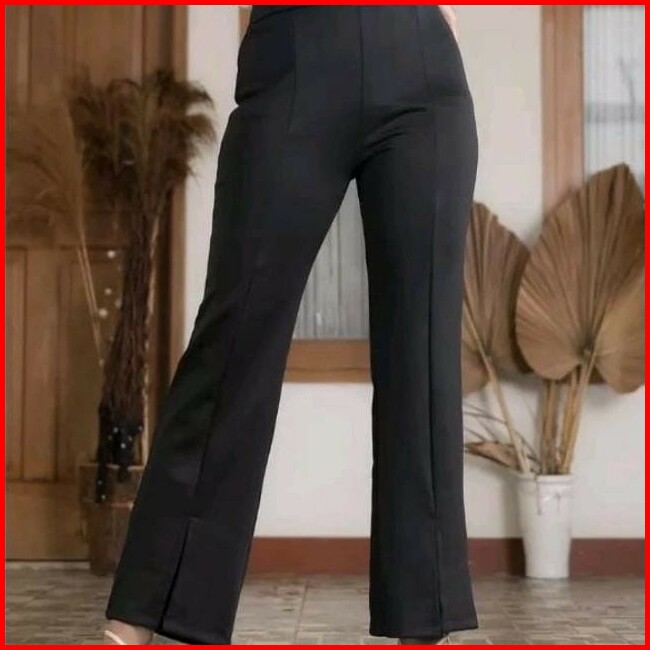 Celana Cutbray Scuba Premium Wanita Panjang Basic Belah Depan