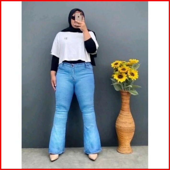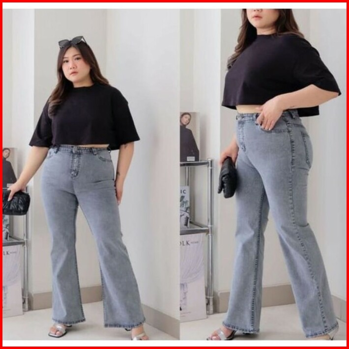 Baru Celana Jeans Cutbray Wanita Highwaist Jumbo 35-46