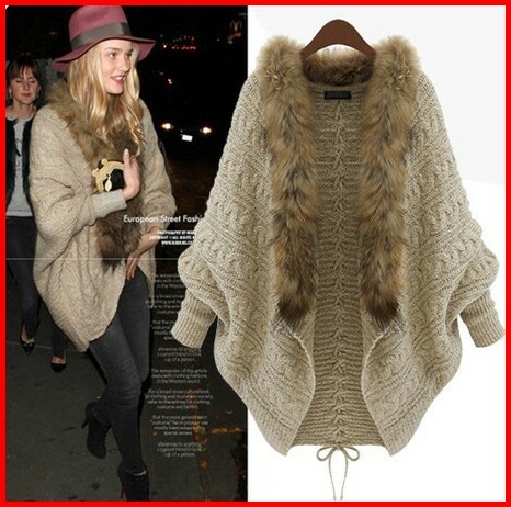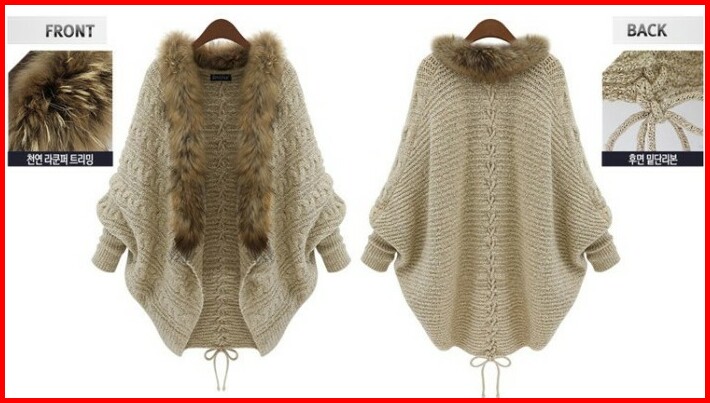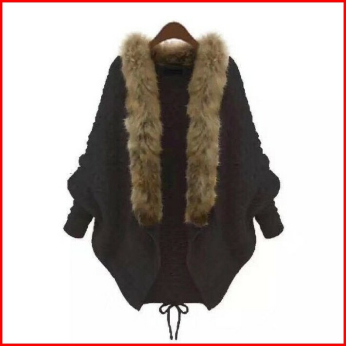 Cardigan Rajut Wanita Lengan Batwing Model Longgar Aksen Bulu Ada