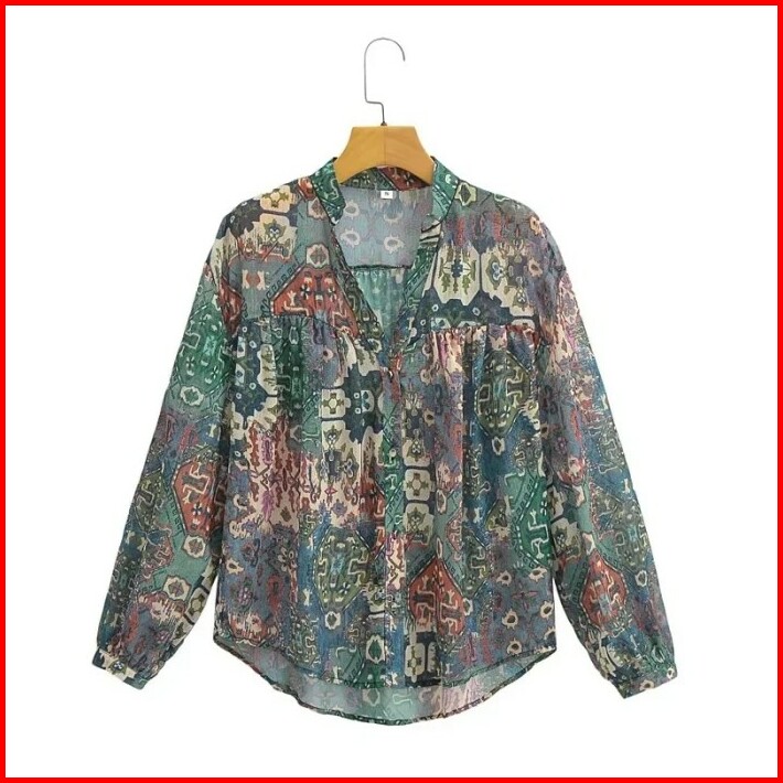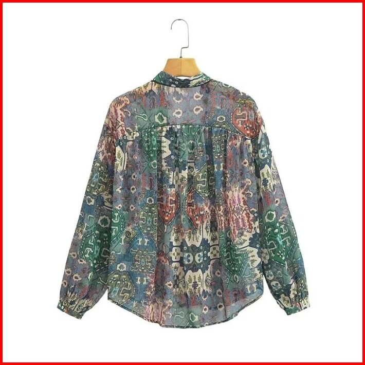 Ethnic Oversize Chiffon Shirt Atasan Wanita Kemeja
