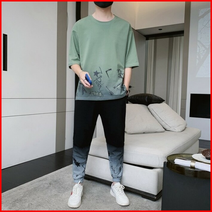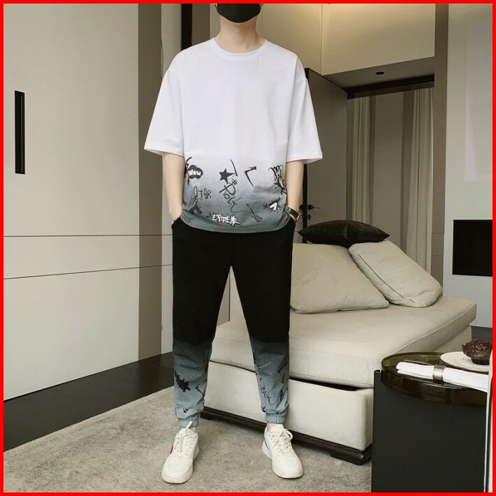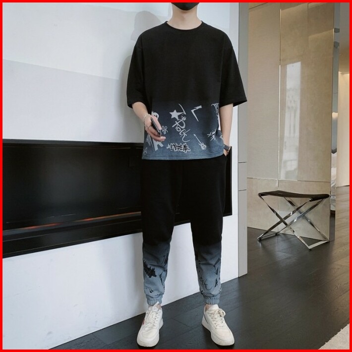 Setelan Kaos Oversize Rock Star Pria Distro Stelan Cowok Celana Jogger