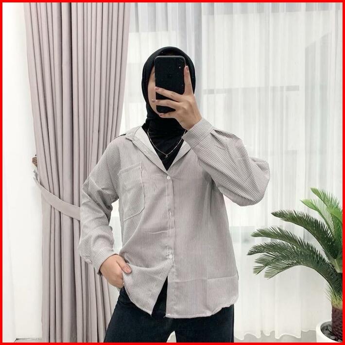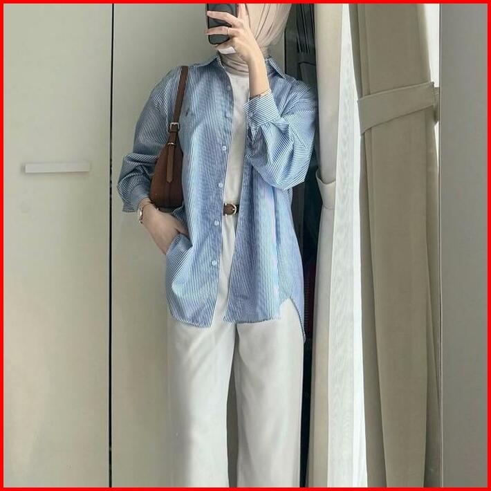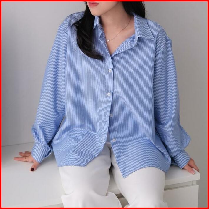 Hara Shirt Kemeja Salur Wanita Oversize Kemeja Korean Style Kekinian Kemeja Stripe Wanita Lengan Panjang Garis Garis Bah
