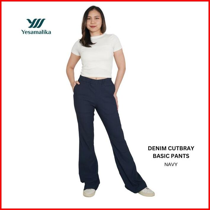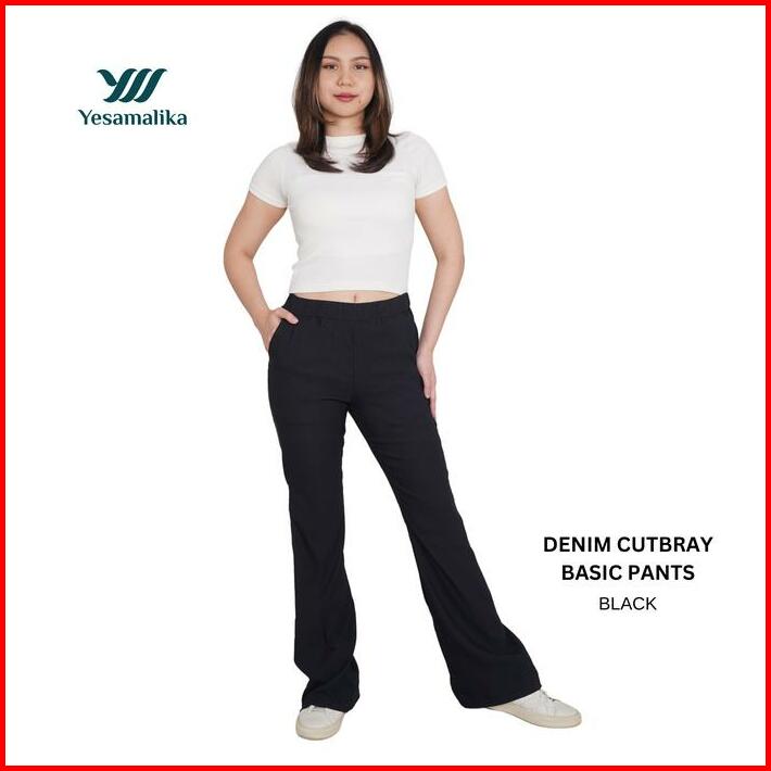 Yesamalika Denim Cutbray Basic Pants Celana Panjang Cutbray Denim Stretch Size Reguler Dan Jumbo