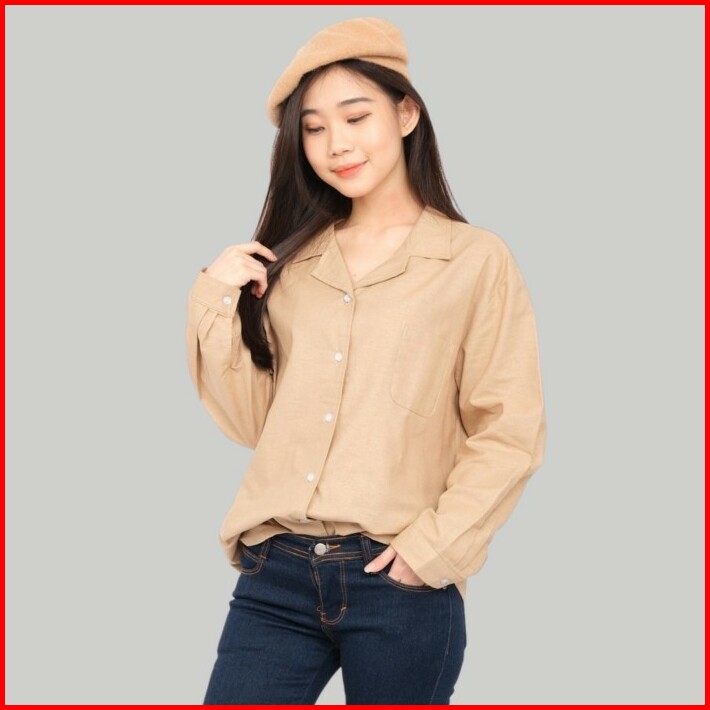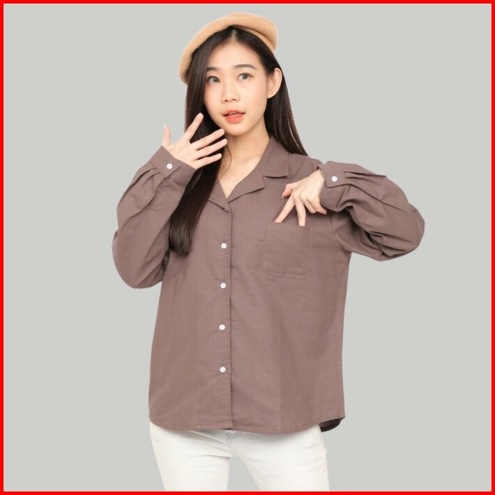 Monellina 50168 Kemeja Oversize Wanita Lengan Panjang Polos