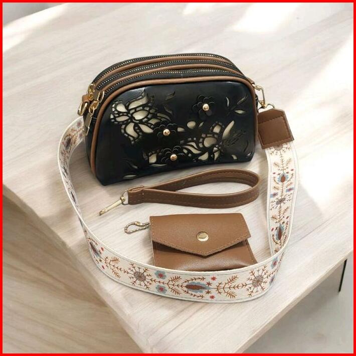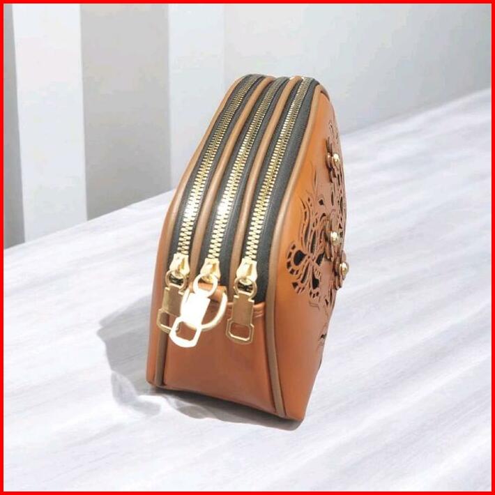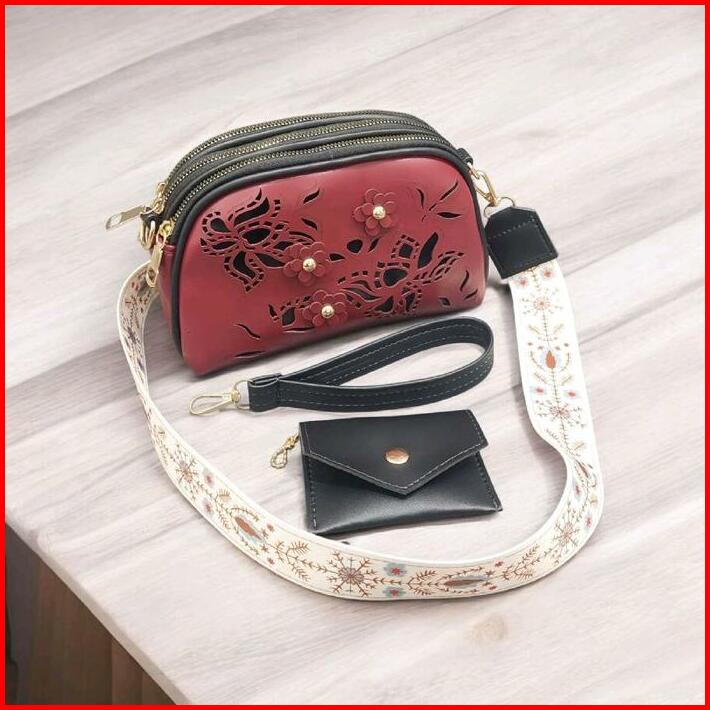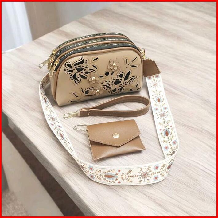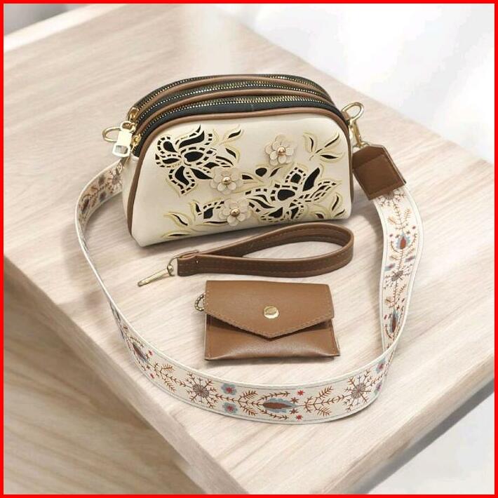 Flower Bag Tas 3 Ruang Selempang Terbaru Tas Wanita Selempang Sholder Bag Kulit Sintetis Slingbag