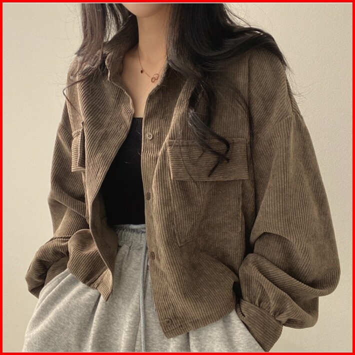 Outer Kemeja Korduroy Wanita Lengan Panjang Oversize Style Jackets
