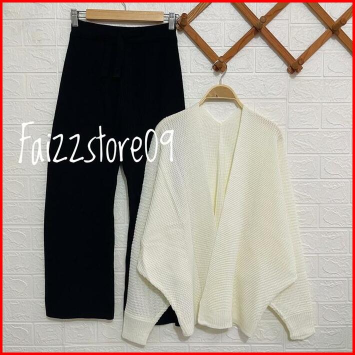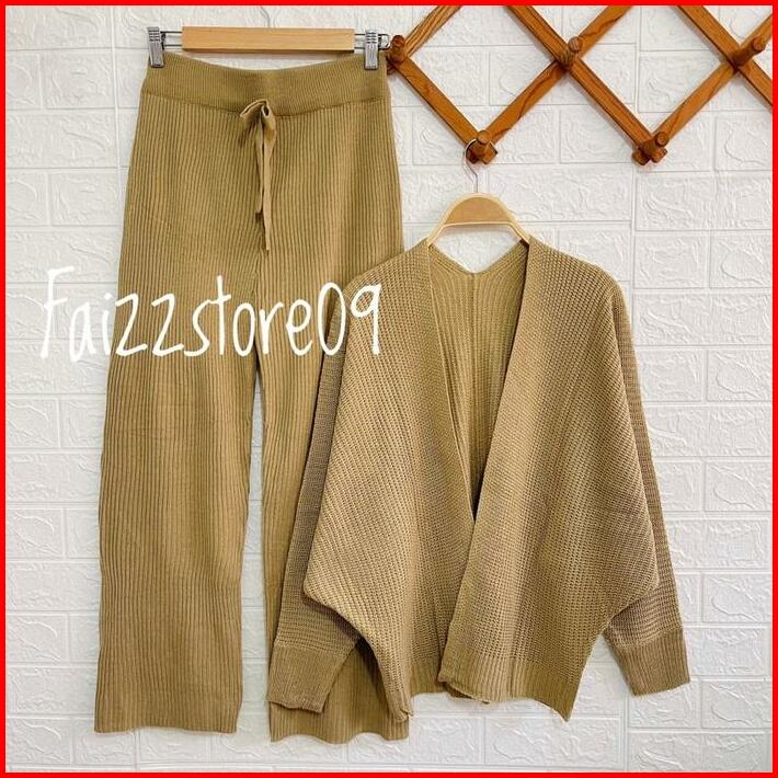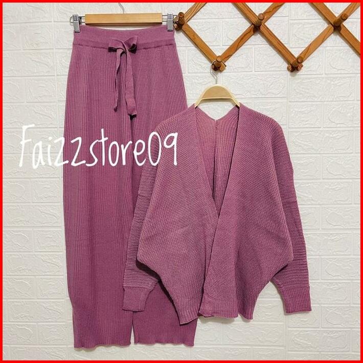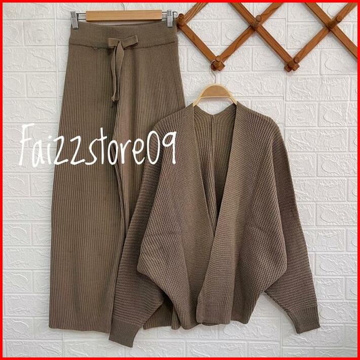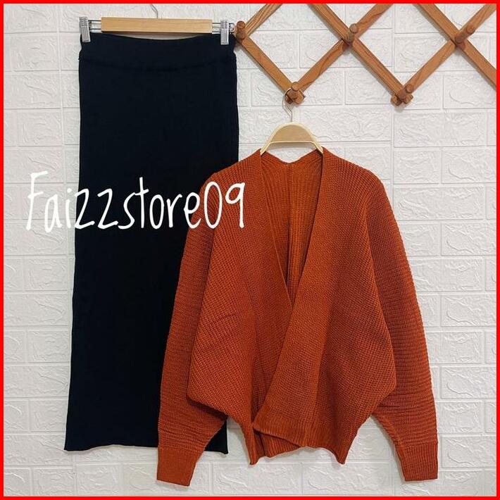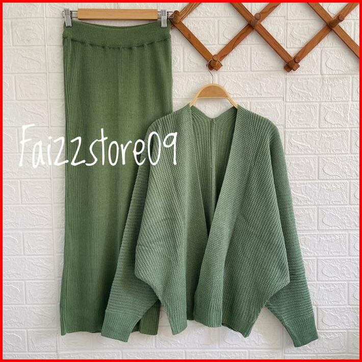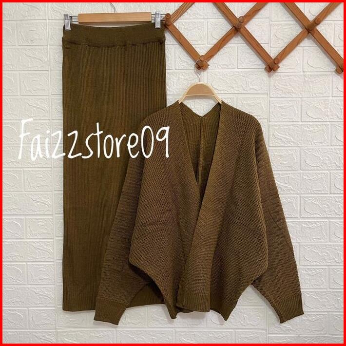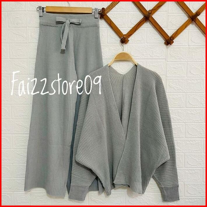 Oneset Cardigan Rajut Batwing Setelan Celana Kulot Dan Rok Baju Panjang