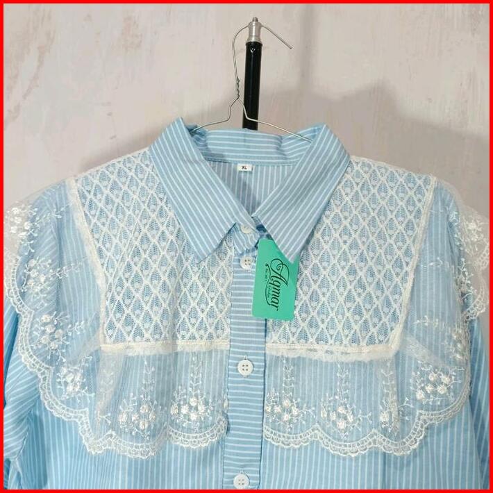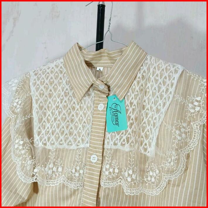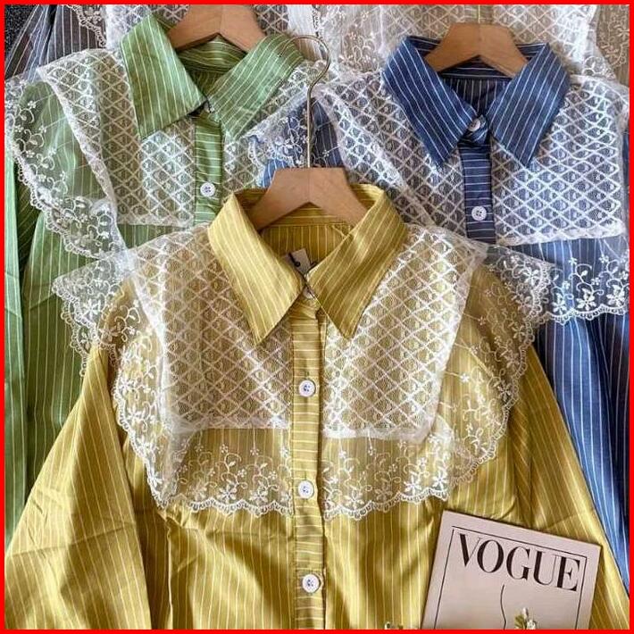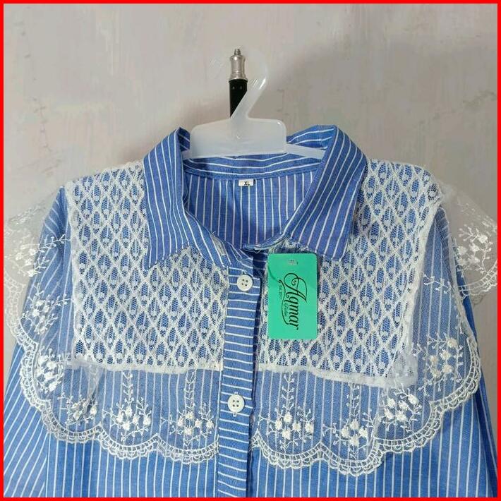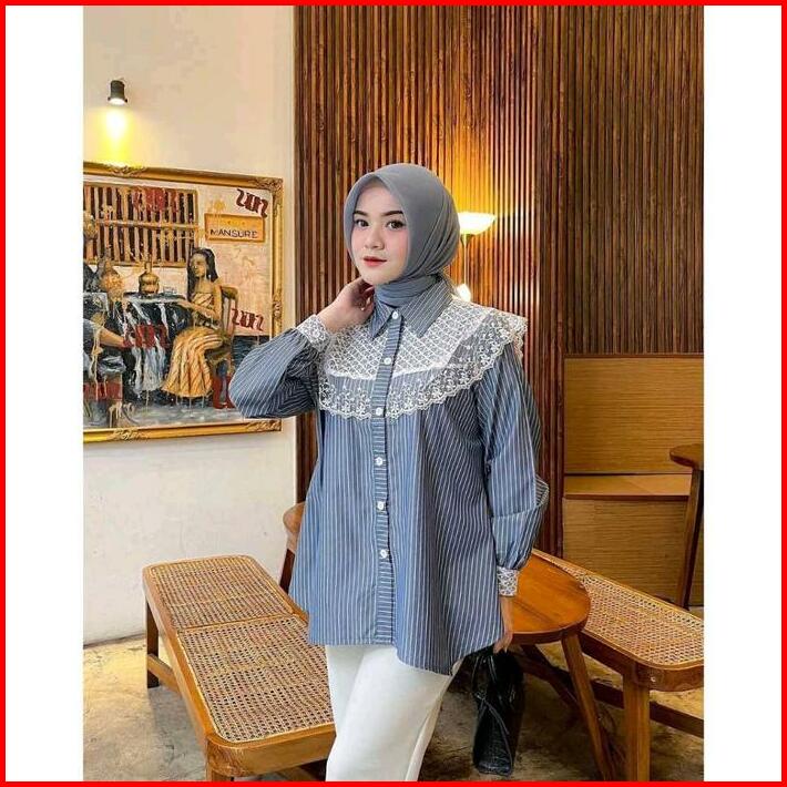 Kemeja Stripe Wanita Oversize Panjang Katun Casual Shakila