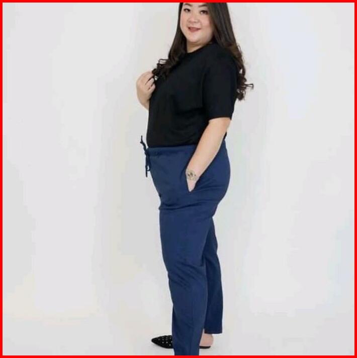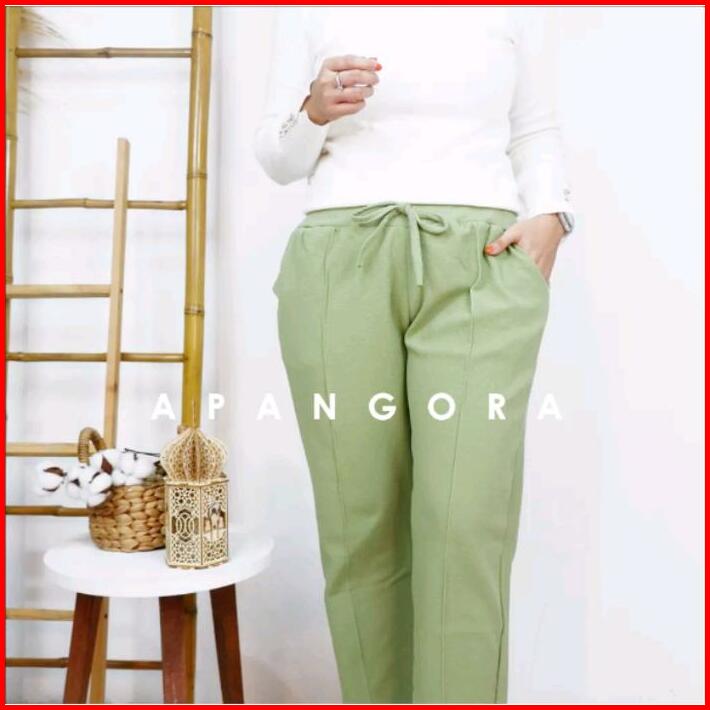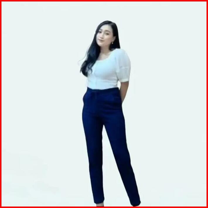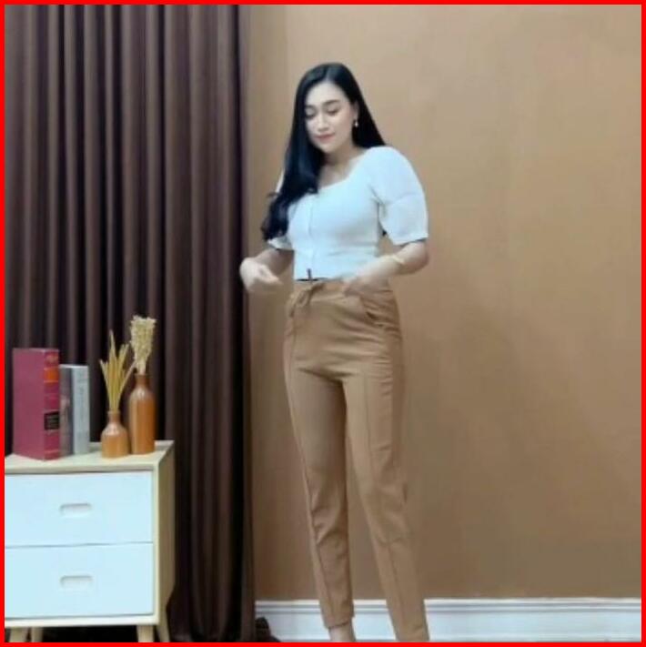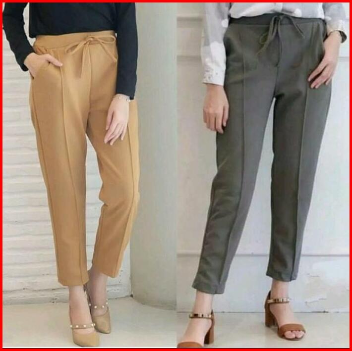 Celana Panjang Wanita Kerja Santai Polos Cewek Casual Cutbray Fit Karet Melar Nyaman Crepe Slim Stretch Basic Tebal Form