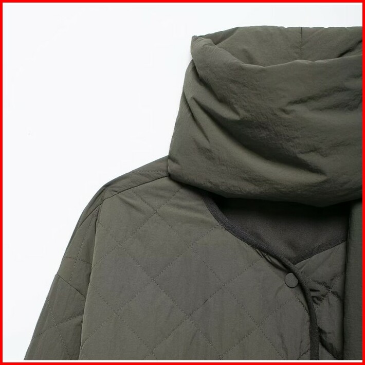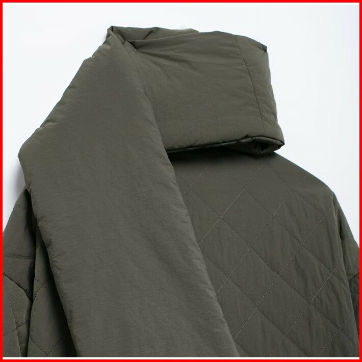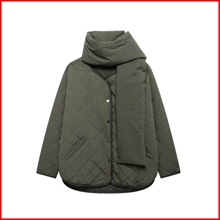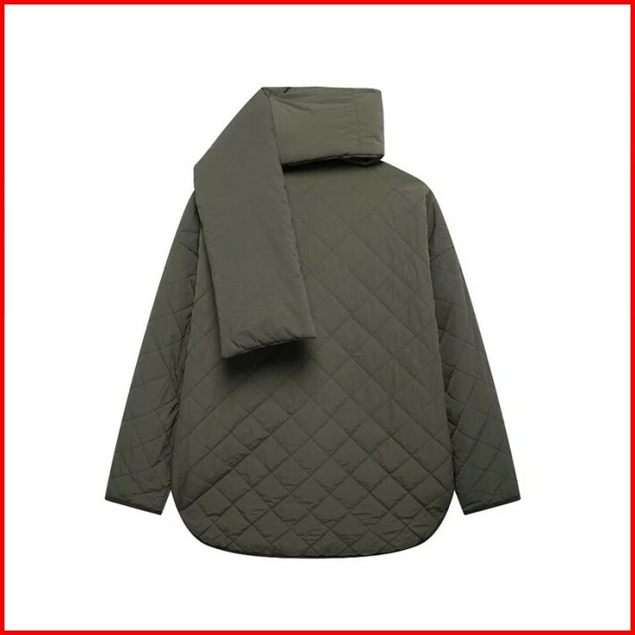 76570 Green Winter Padded Jacket With Scarf Jaket Wanita Musim Dingin