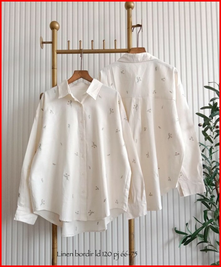 Baju Atasan Katun Bordir Wanita Fashion Kemeja Tunik Polos Wanita