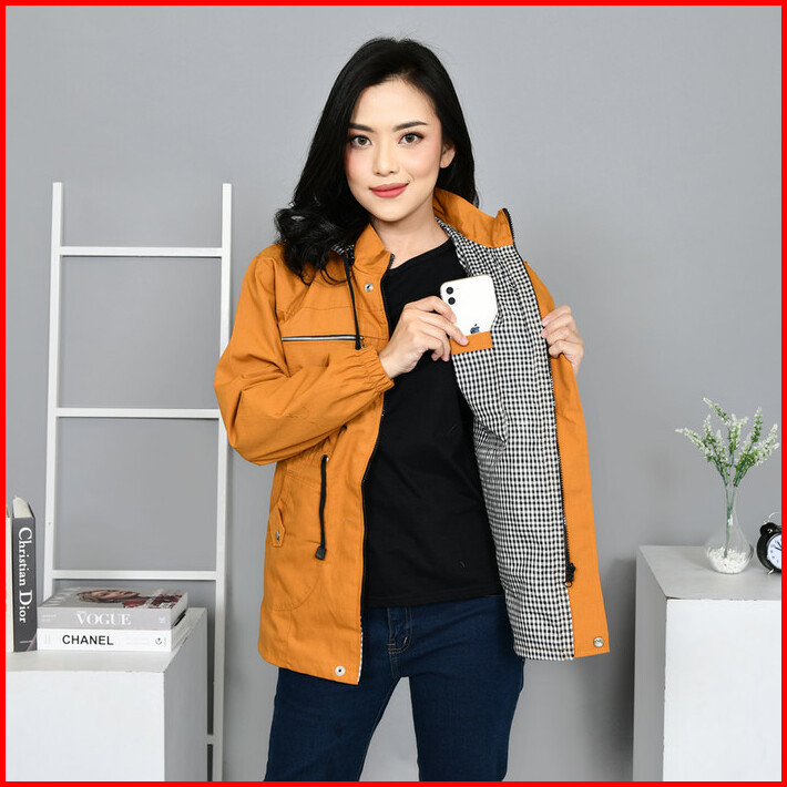 Jaket Parka Wanita Korean Style Bolak Balik Bahan Baby Canvas