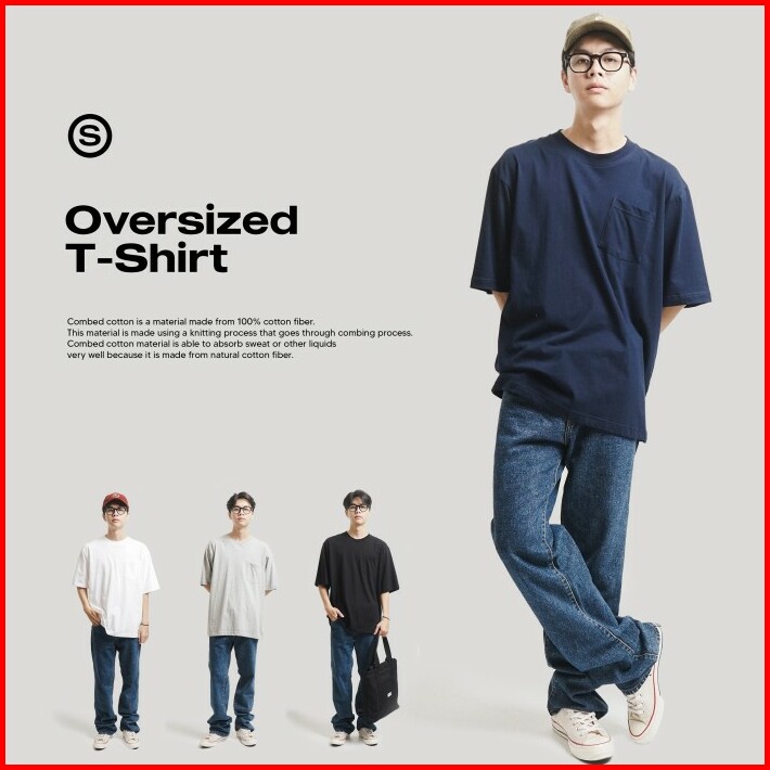 Sipolos Kaos Oversize Pocket Lengan Pendek Cotton Combed 20s