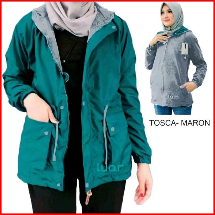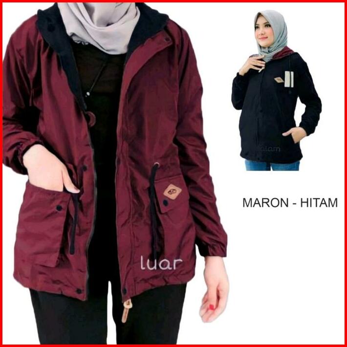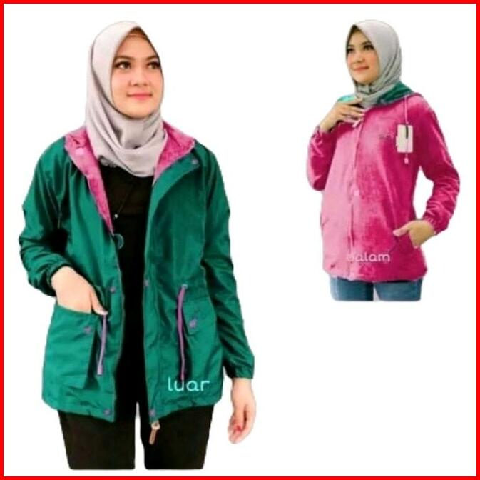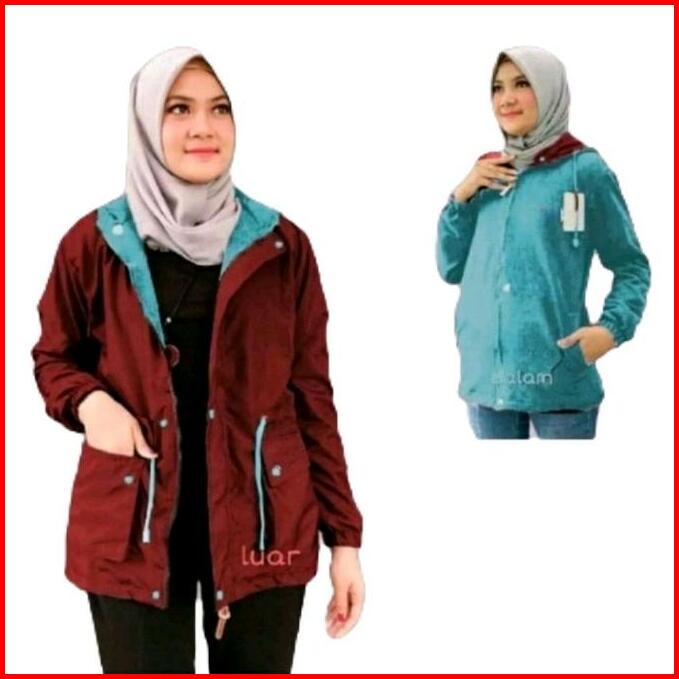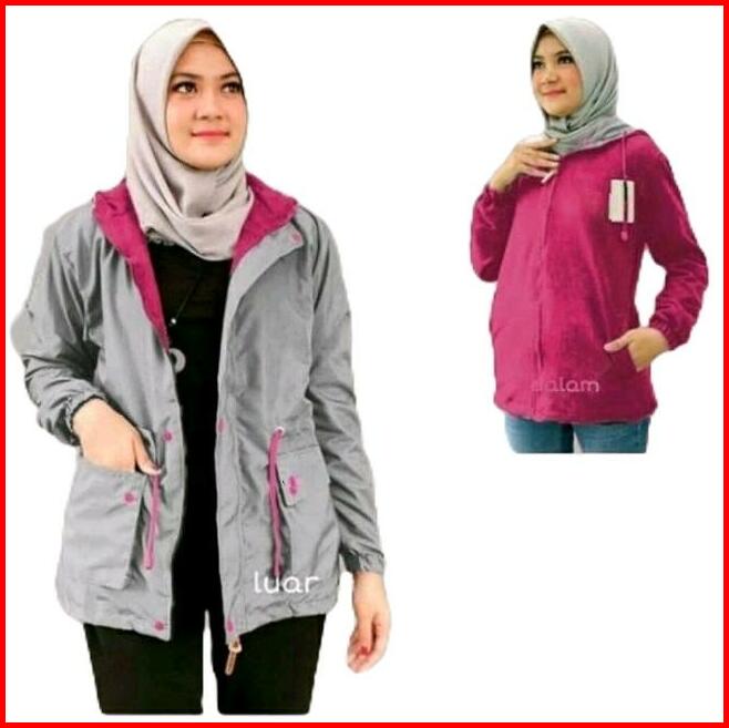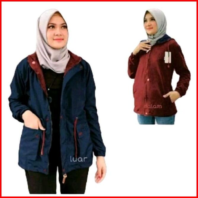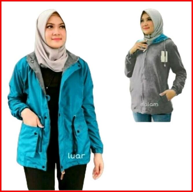 Jaket Wanita Parka Cewe 2in1 Bb Perasut Fleece Tahan Air Panjang Tebal Toska Abu Rapi Nevy Cewek