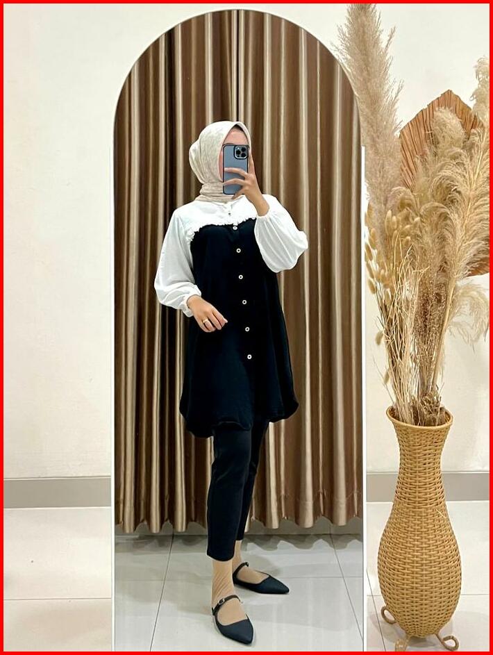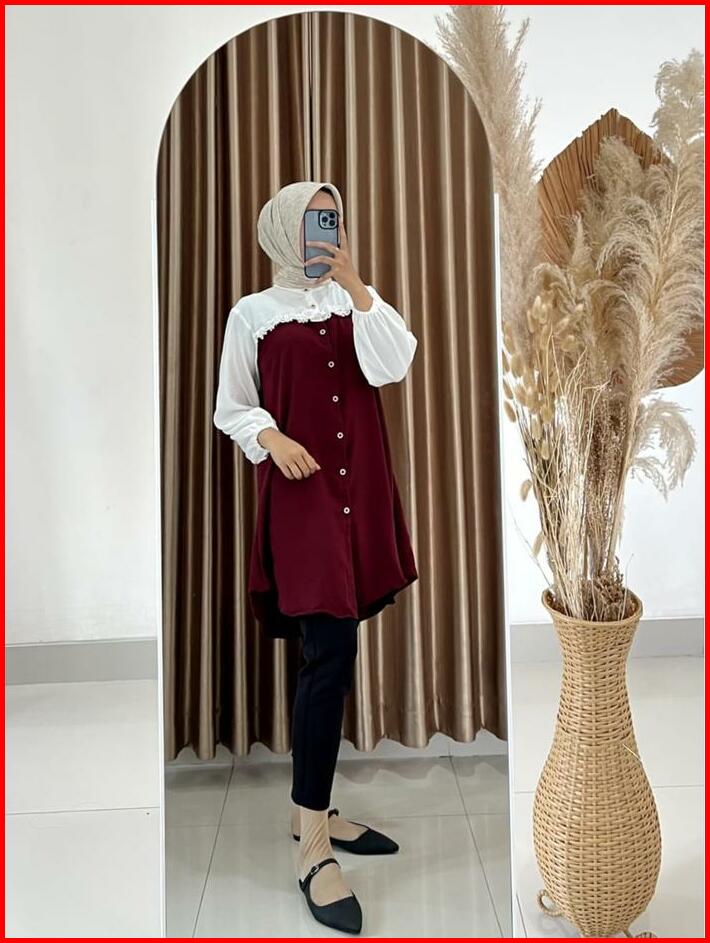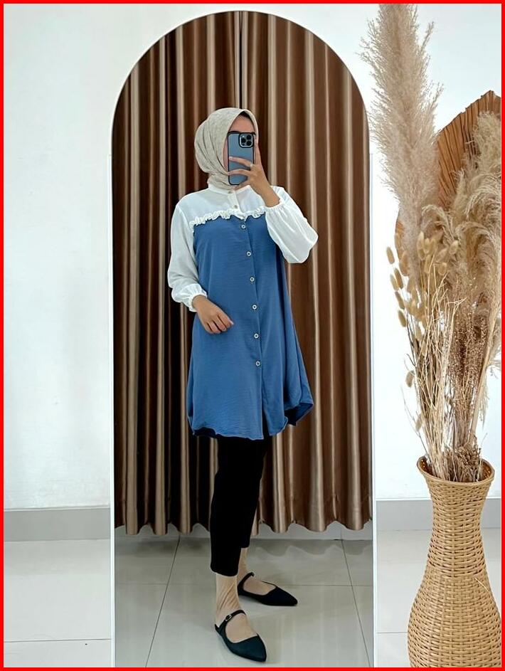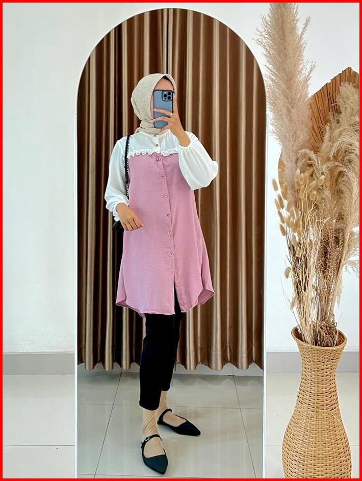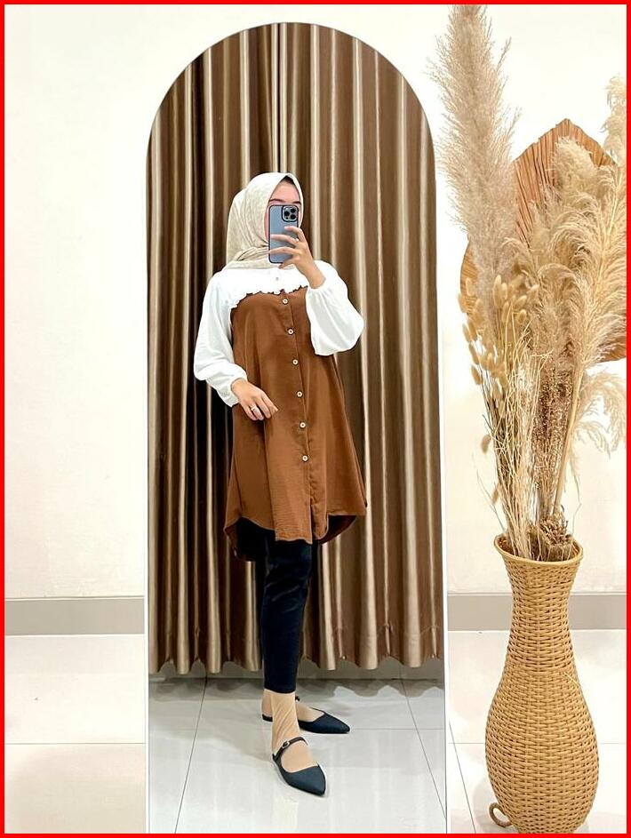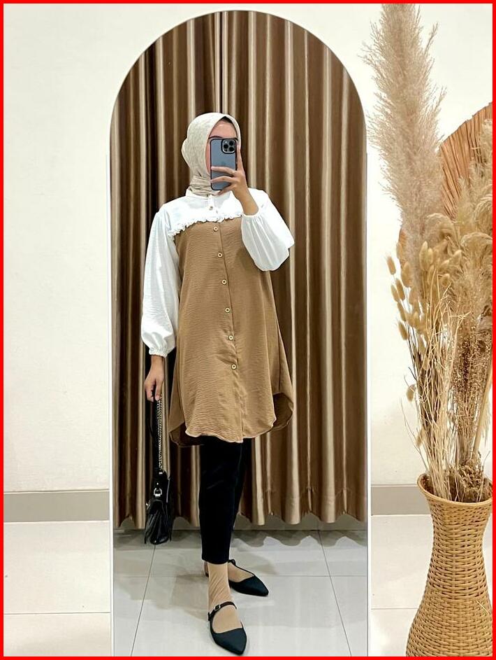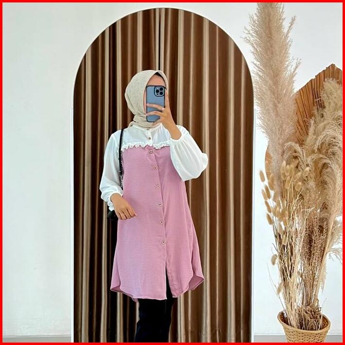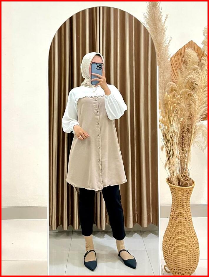 Tunik Elegan Simple Wanita Kekinian Tunik Ezzha 2025 Aesthetic Hijab Terbaru Remaja Basic Crinkle Airflow Panjang