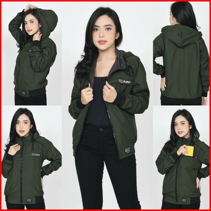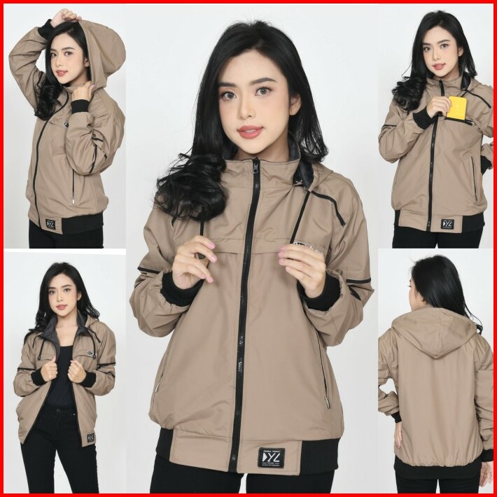 Jaket Parasut Taslan Waterproof Bolak Balik Wanita Original Distro Hoxer