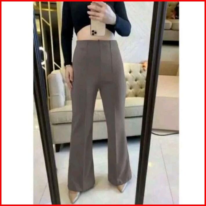 Celana Cutbray Wanita Bahan Scuba Melar Panjang Kulot Kerja Karet Basic Hitam Cewek Kaki