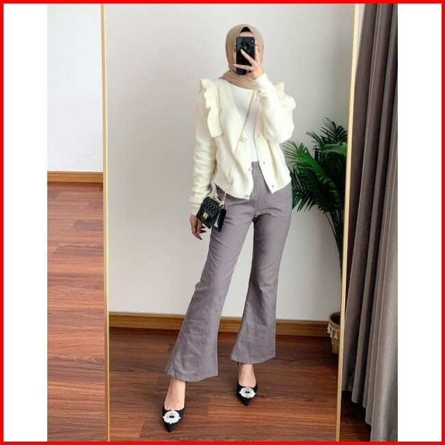 Celana Cutbray Basic Pants Premium Wide Leg Cotton Combed