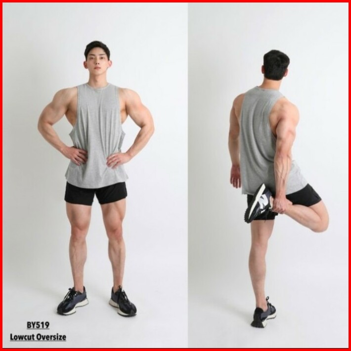 Singlet Kaos Pria Tanpa Lengan Abu Muda Low Cut Oversize