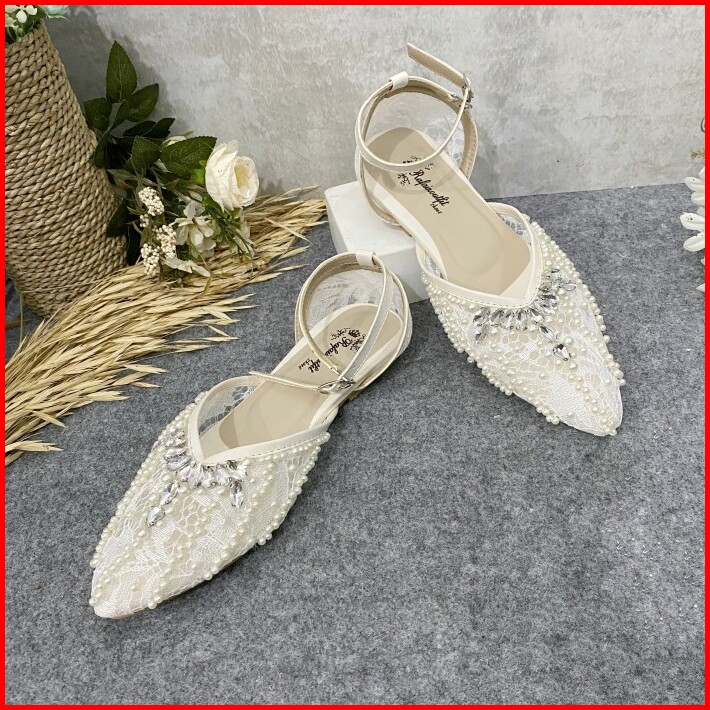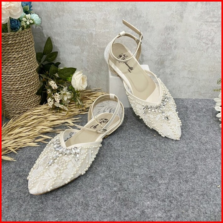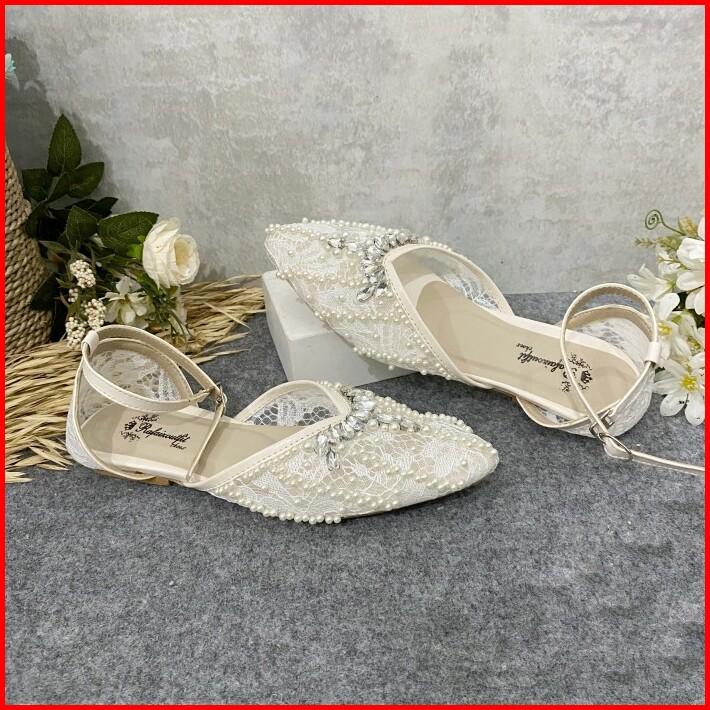 Flatshoes Wedding Pesta Wanita Cantik Ellin Tali Broken White