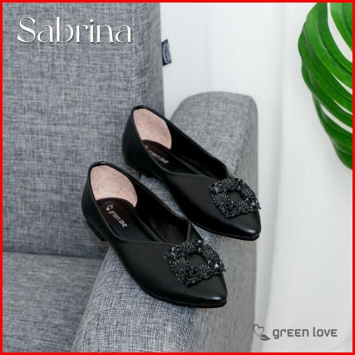 Green Love Sepatu Cewek Kerja Hitam Wanita Flatshoes Sol Karet Sabrina