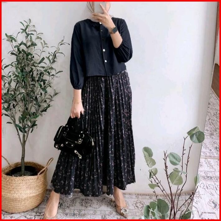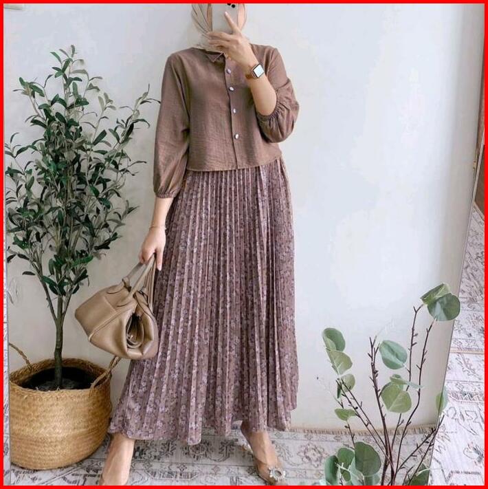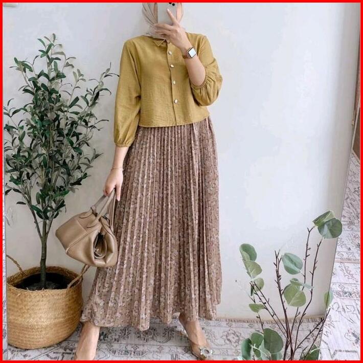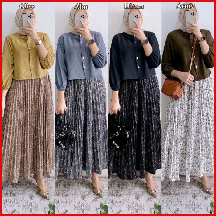 New Zavika Set Rok Viral Setelan Blouse Dan Rok Plisket Terlaris Kekinianpoli Linen