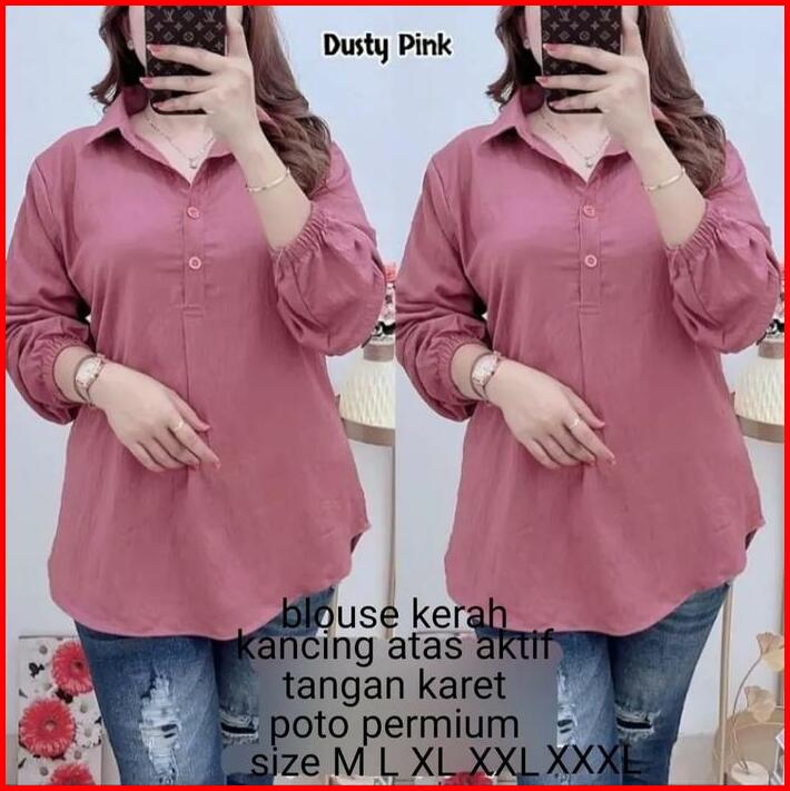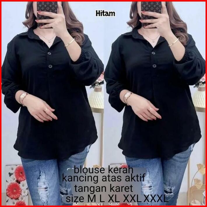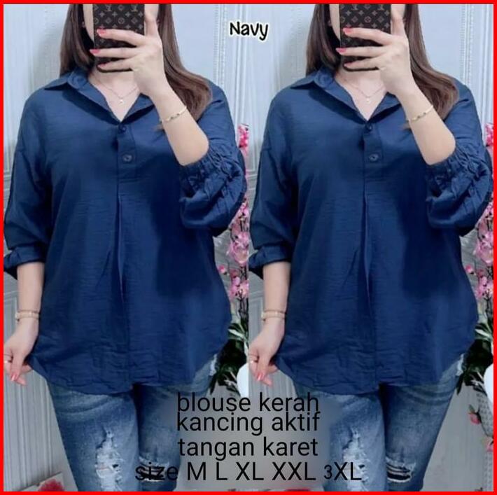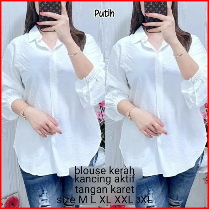 Kemeja Blouse Wanita Lengan Karet Bahan Crinkle Airflow Atasan Wanita Kemeja Kekinian Atasan Viral Terbaru Pakaian Kemej