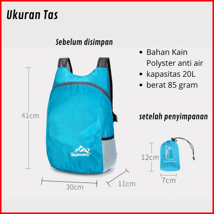 Tas Ransel Olahraga Lipat Unisex Waterproof Sports Backpack Foldable Tas Punggung Lipat Kecil 20 L T 0232 Mfb
