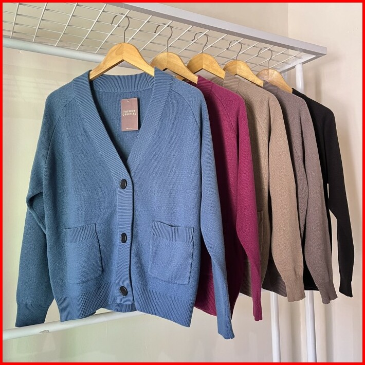 Fafour Zaylee Cardigan Rajut Wanita Saku Polos Korean Style Knitwear