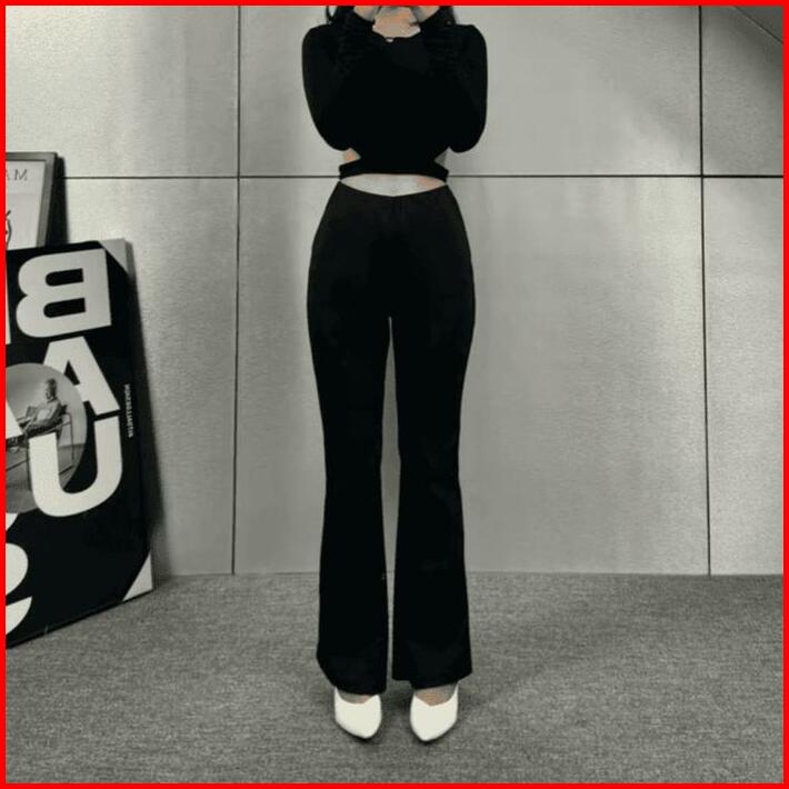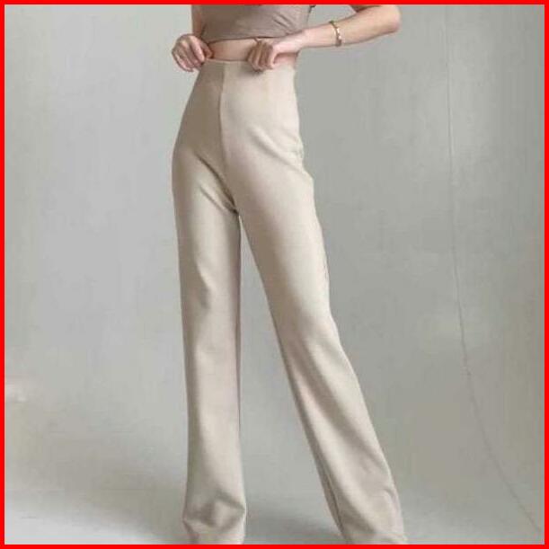 Celana Flare Pants Semi Cutbray Scuba Highwaist Super Jumbo Wanita Dewasa Loose Bawahan Kerja Hitam Basic Panjang Karet
