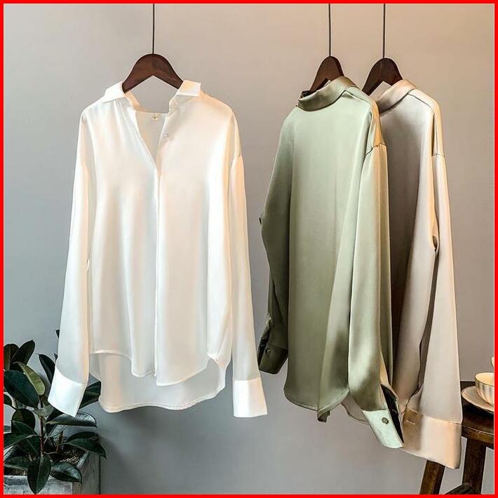Kemeja Polos Wanita Lengan Panjang Satin Silk Big Size Ukuran S M L Xl Xxl Xxxl Xxxxl 4xl 2xl 3xl 5xl 2l 3l 4l 5l Kemeja