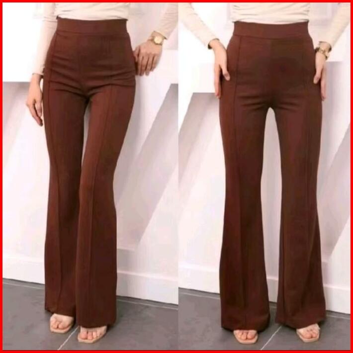 Celana Cutbray Garis Flare Celana Scuba List Celana Panjang Highwaist Celana Flare Fit Karet Lembut Melar Tebal Wanita
