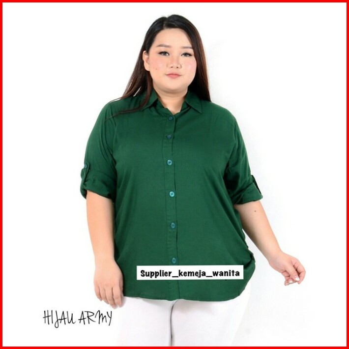 Kemeja Wanita Rayon Jumbo Bigsize Oversize Warna Hijau Botol Xxxl