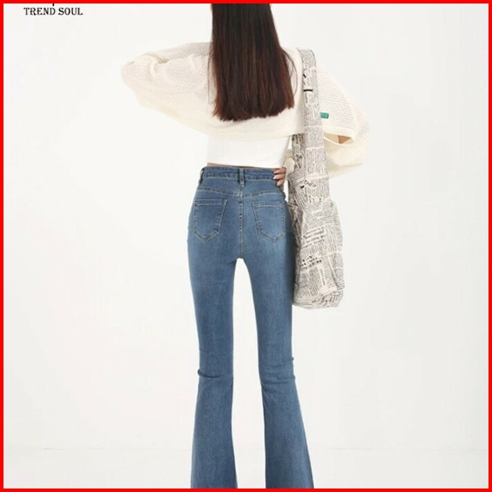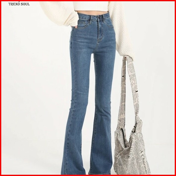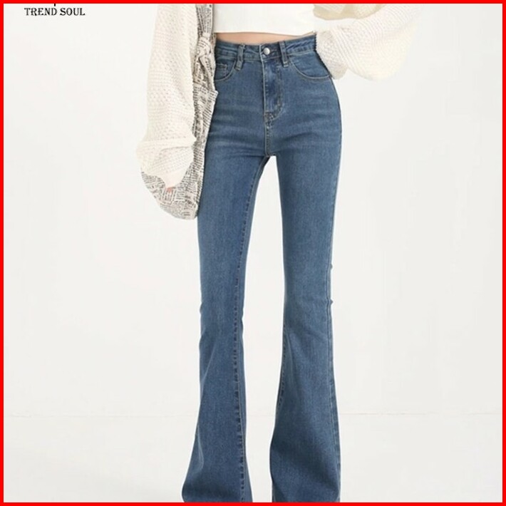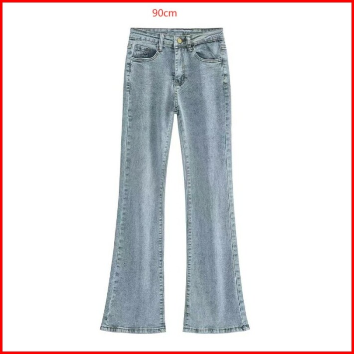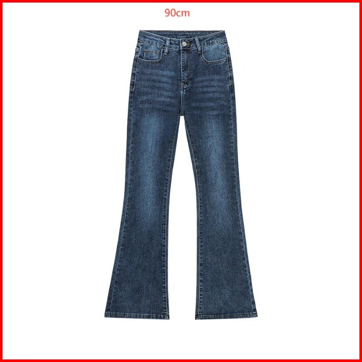 Biru Retro Highwaist Stretch Cutbray Celana Jeans Panjang Wanita