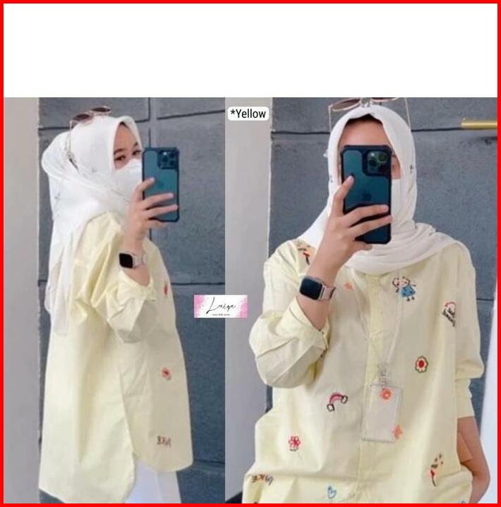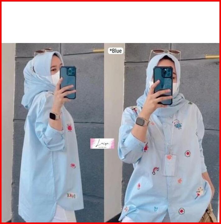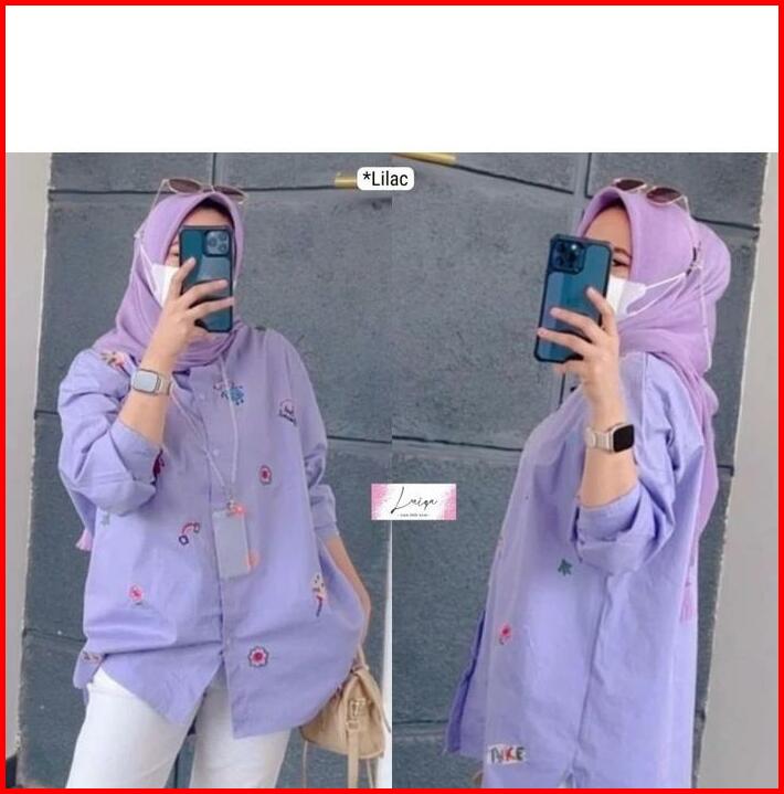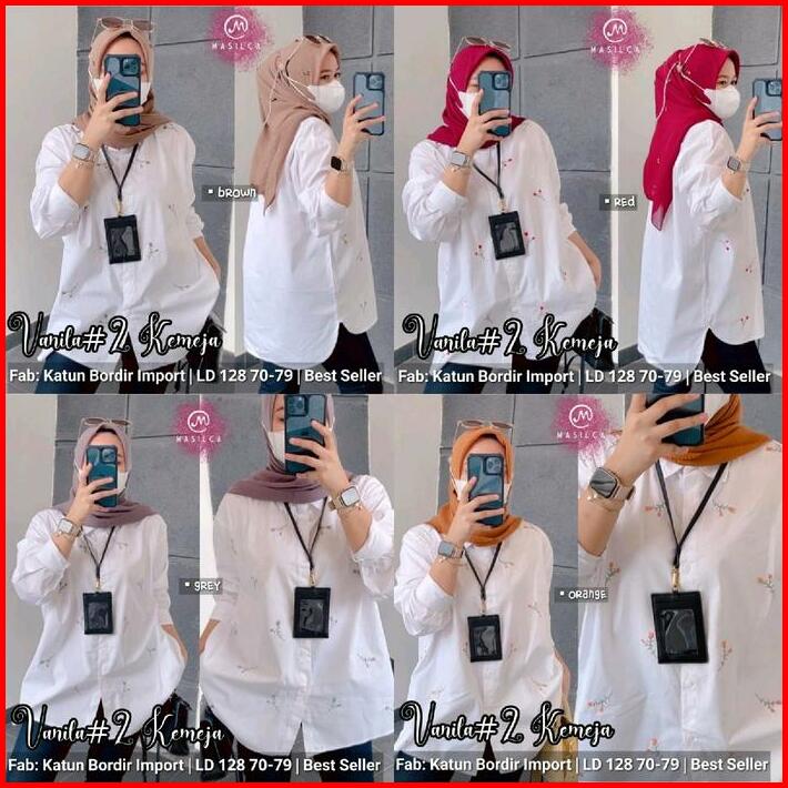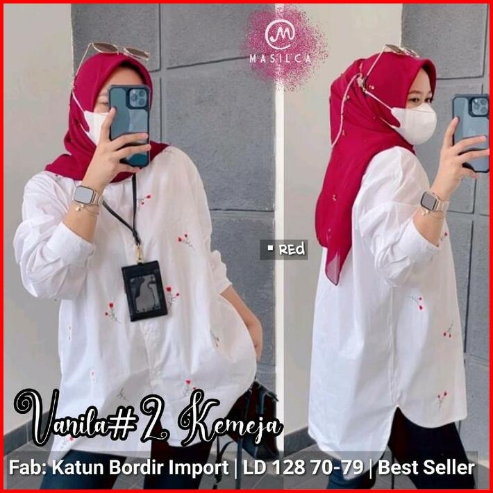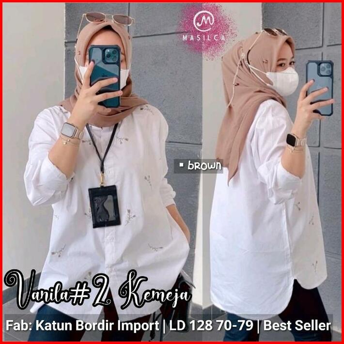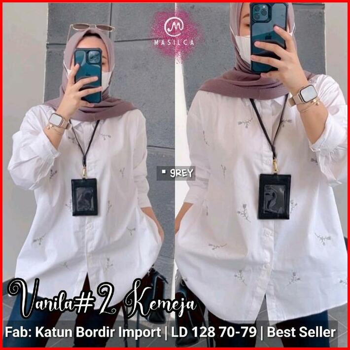 Kemeja Vanila Masilca. Busana Atasan Wanita Kemeja Panjang Putih Katun Poplin Motif Bordir Bunga Ld 128 Junbo Oversize O