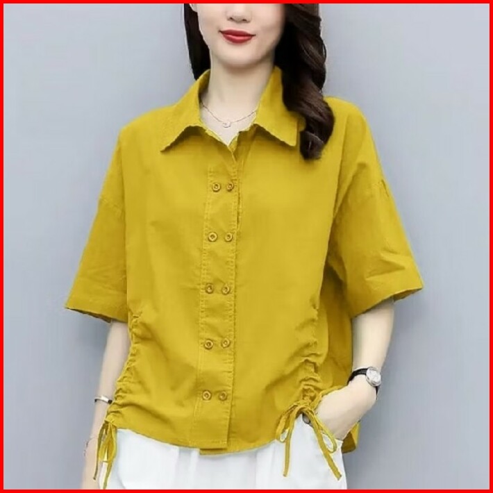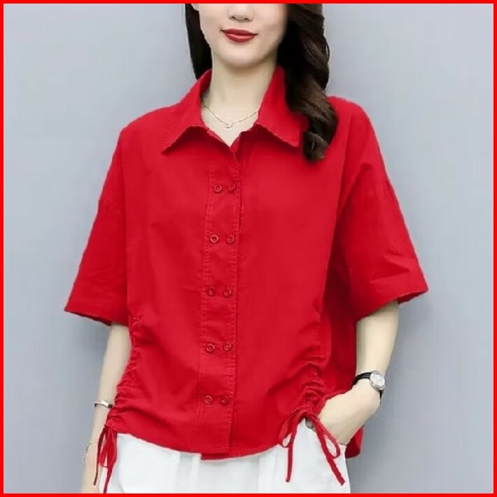 Blouse Kemeja Wanita Lengan Pendek Oversize Atasan Wanita Bahan Katun