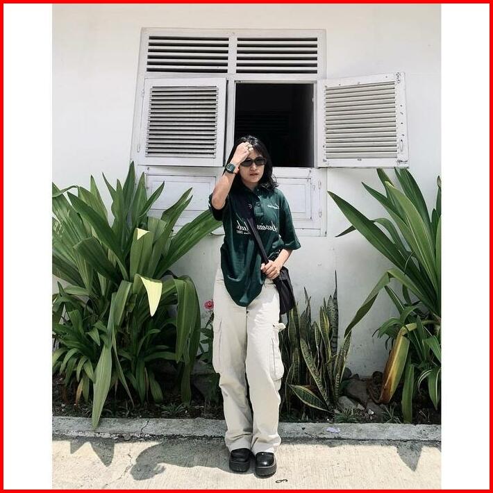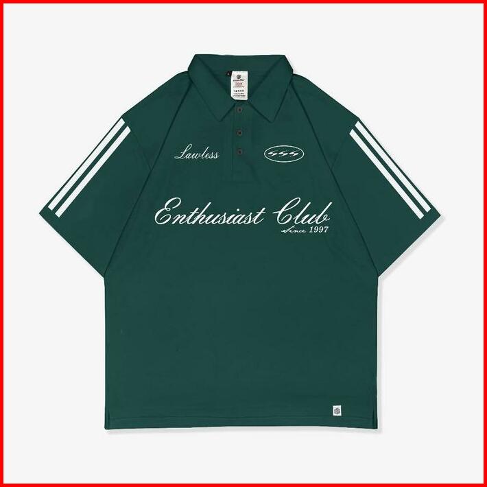 Ootdsupply Oversize Polo Shirt Enthusiast Clubs Dark Army L Kaos Polo Pria Dan Wanita Ovz-ps009